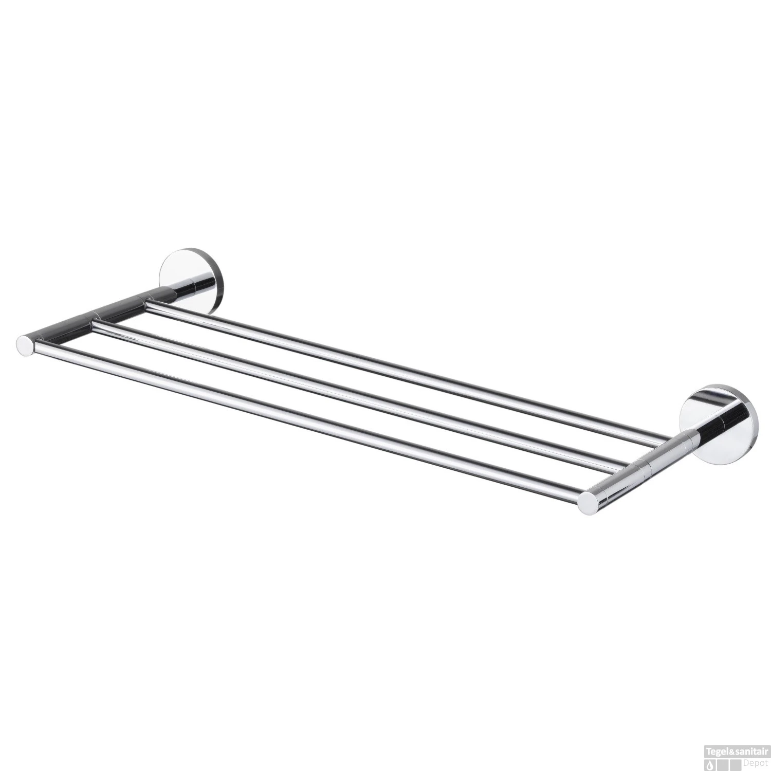 Dit rek van 60cm met drie stangen is niet alleen geschikt voor het ophangen van handdoeken of natte spullen, u kunt er ook een flinke stapel schone handdoeken opleggen. Zo krijgt uw badkamer de allure van een hotel.