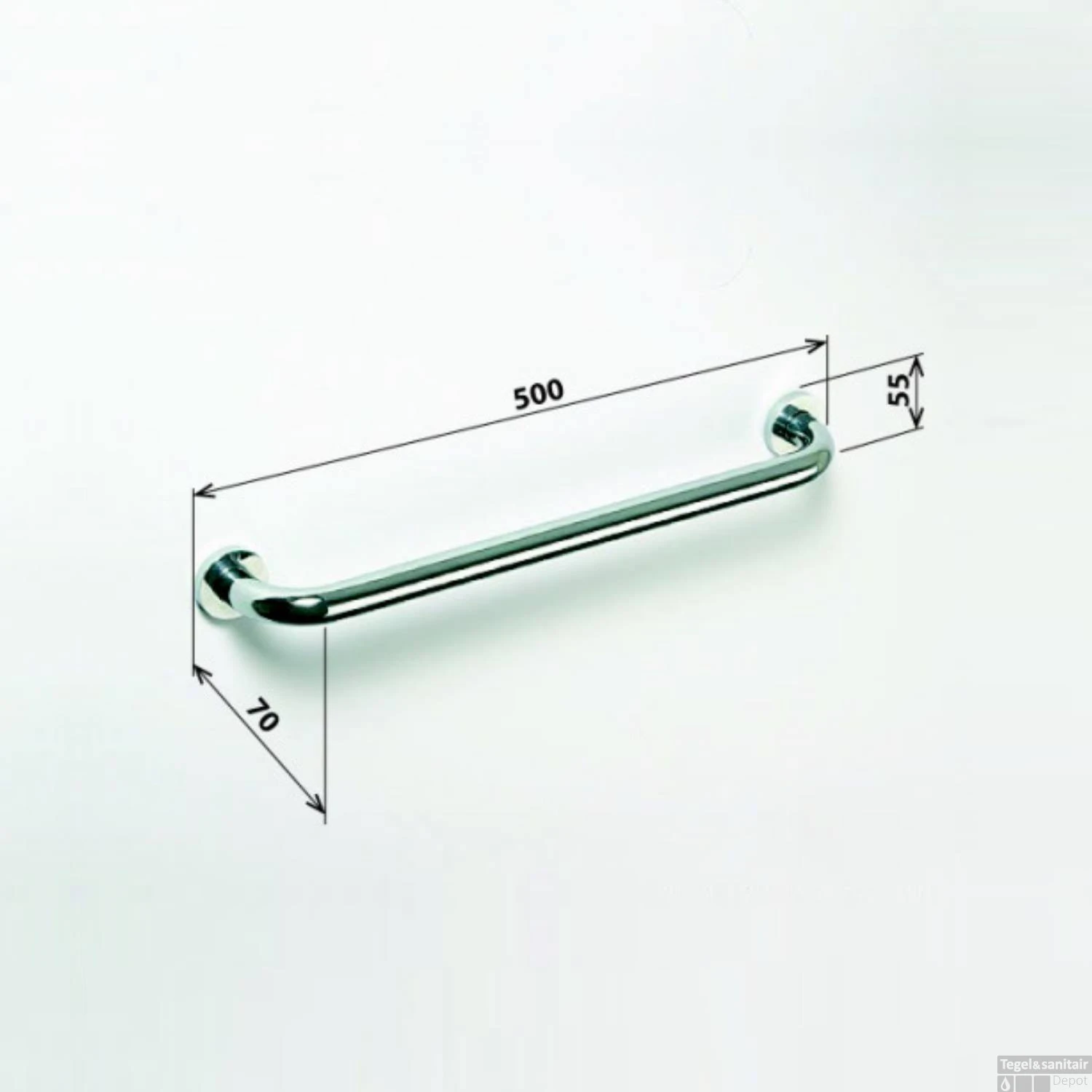 Heeft u moeite met in of uit het bad stappen? Of bent u bang om te vallen onder de douche. Deze greep bied wat extra veiligheid in uw badkamer. De beugel is gemaakt van verchroomd messing en wordt bevestigd met behulp van schroeven in de wand. Het handvat heeft een lengte van 50 cm, een hoogte van 5.5 cm en een diepte van 7 cm.