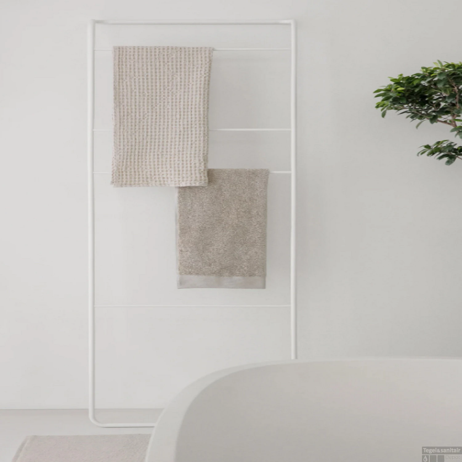 Deze fraaie handoekladder van Blomus komt uit de Modo serie. Deze wit gekleurde gastendoekjesrek is van roestvrij staal met titaniumcoating. Dit zorgt ervoor dat dit corrosiebestendig, slijtvast en krasvast is. De onderkant van de ladder heeft zogenaamde rubberen voetjes wat ervoor zorgt dat de ladder stevig staat. De hoogte is 13cm, lengte 170cm en breedte 55 cm.