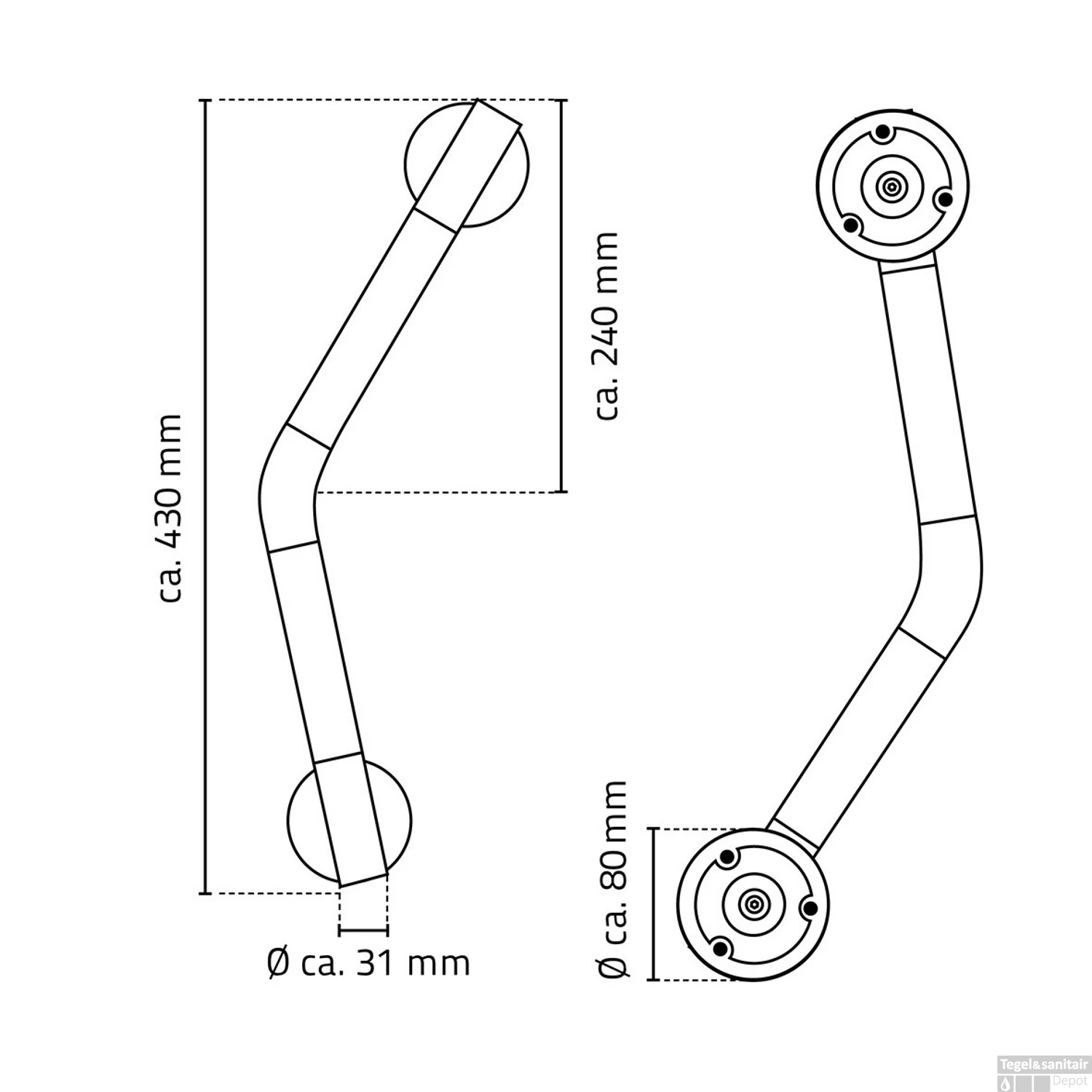 Specificaties Hoekbadgreep Met Antislip Wiesbaden Ridder Ken 45 cm Chroom:
