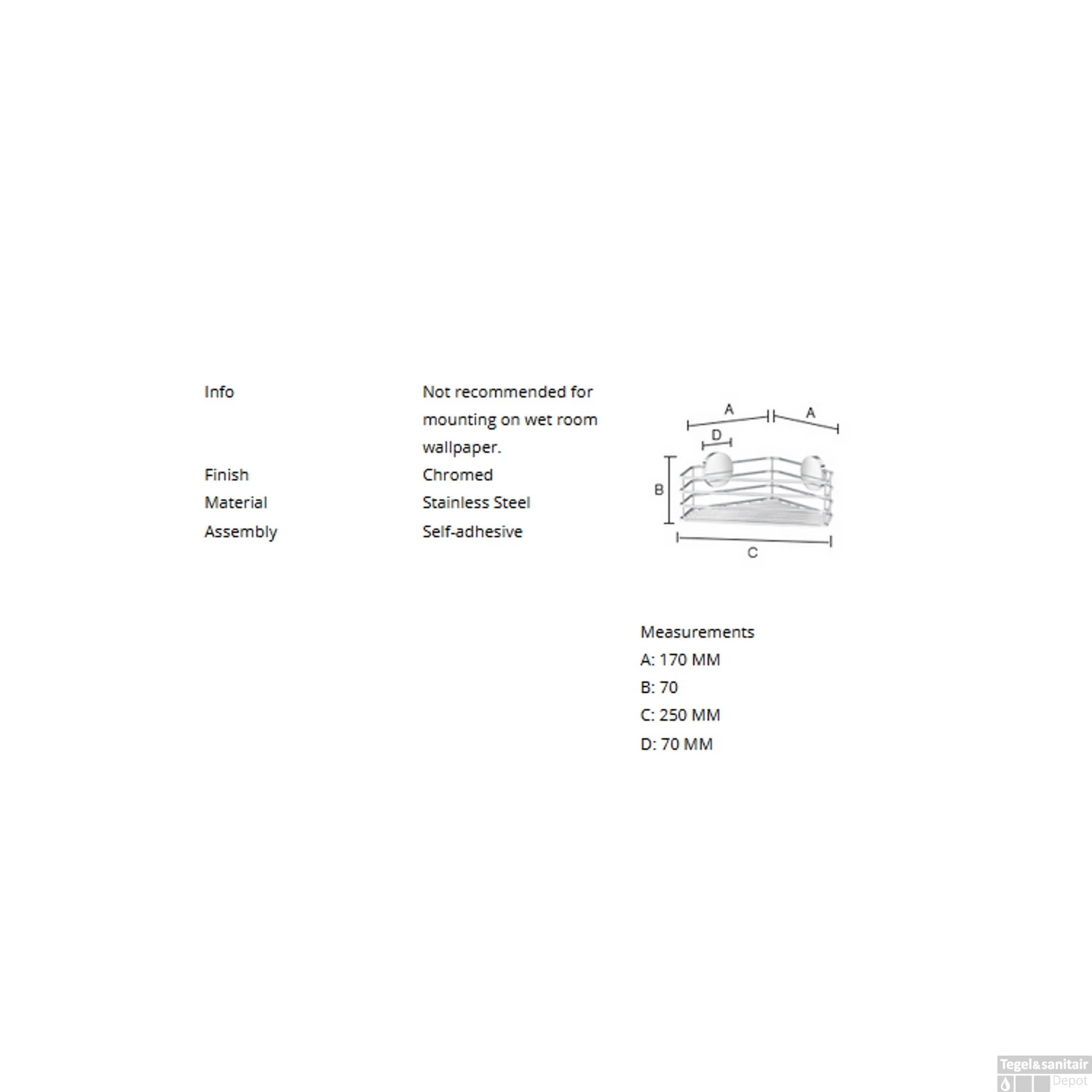 Specificaties Hoekdraadkorf Smedbo Zelfklevend 25x17x7 cm Chroom: