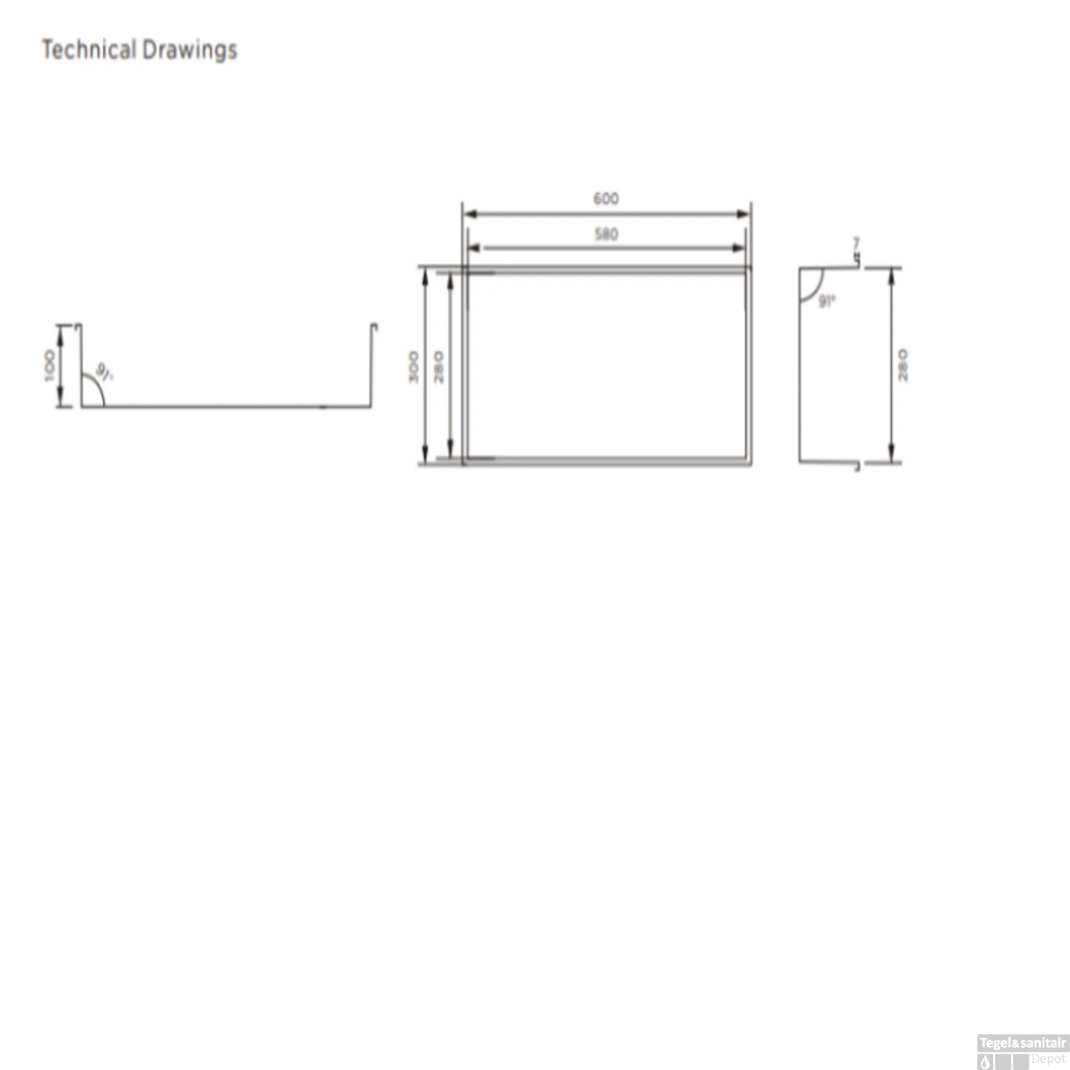De Geborsteld goude inbouwnis heeft een lengte van 60cm, breedte van 30 cm en een diepte van 10 cm.