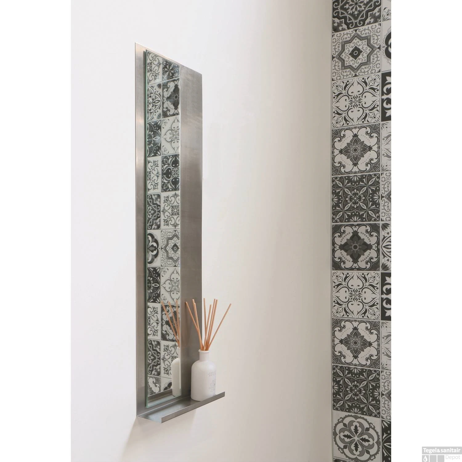 Het planchet van INK is van de Note serie en hiermee slaat u twee vliegen in één klap. Dit is namelijk een planchet én een spiegel! Hiermee voegt u een prachtige spiegel toe aan uw badkamer, en zorgt u ook nog eens voor extra opbergruimte. Het planchet heeft een afmeting van 20×72 waar u op de 20 centimeter in de breedte genoeg badkamer spullen op kwijt kunt. De afmeting van de spiegel is 10×70 en is daarmee iets smaller dan het planchet. Het planchet is gemaakt van staal.