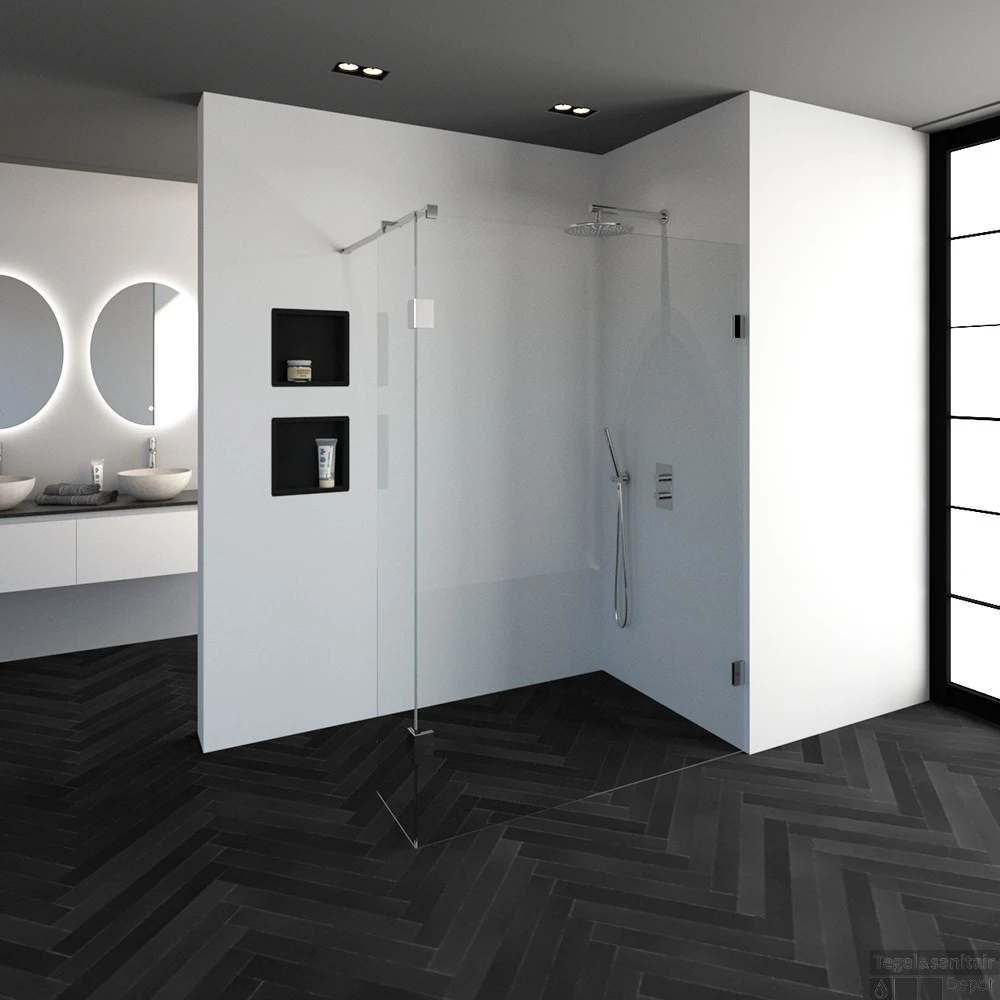 Deze complete inloopdouche bestaat uit een inloopwand en zijwand met Chroom beslag. Inclusief glasbehandeling. De hoogte van de inloopdouche is 200 cm. Hij is 137,7 cm breed en maximaal 200 cm diep. Deze inloopdouche straalt luxe uit door zijn design en kleur.