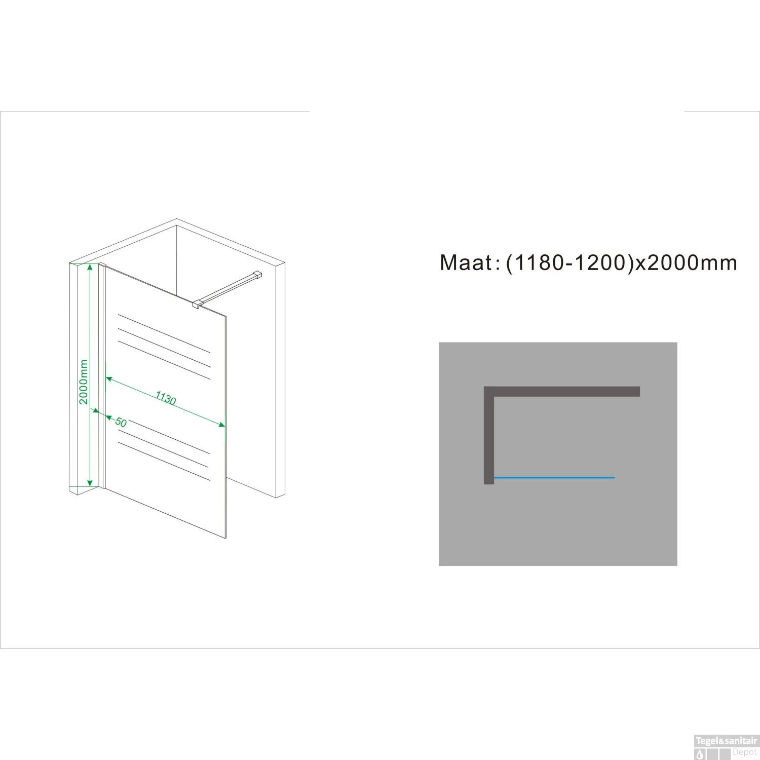 LET OP: Omdat de inloopdouche ook op een douchebak te plaatsen is zijn de afmetingen 2 á 3 cm kleiner als aangegeven op de specificaties