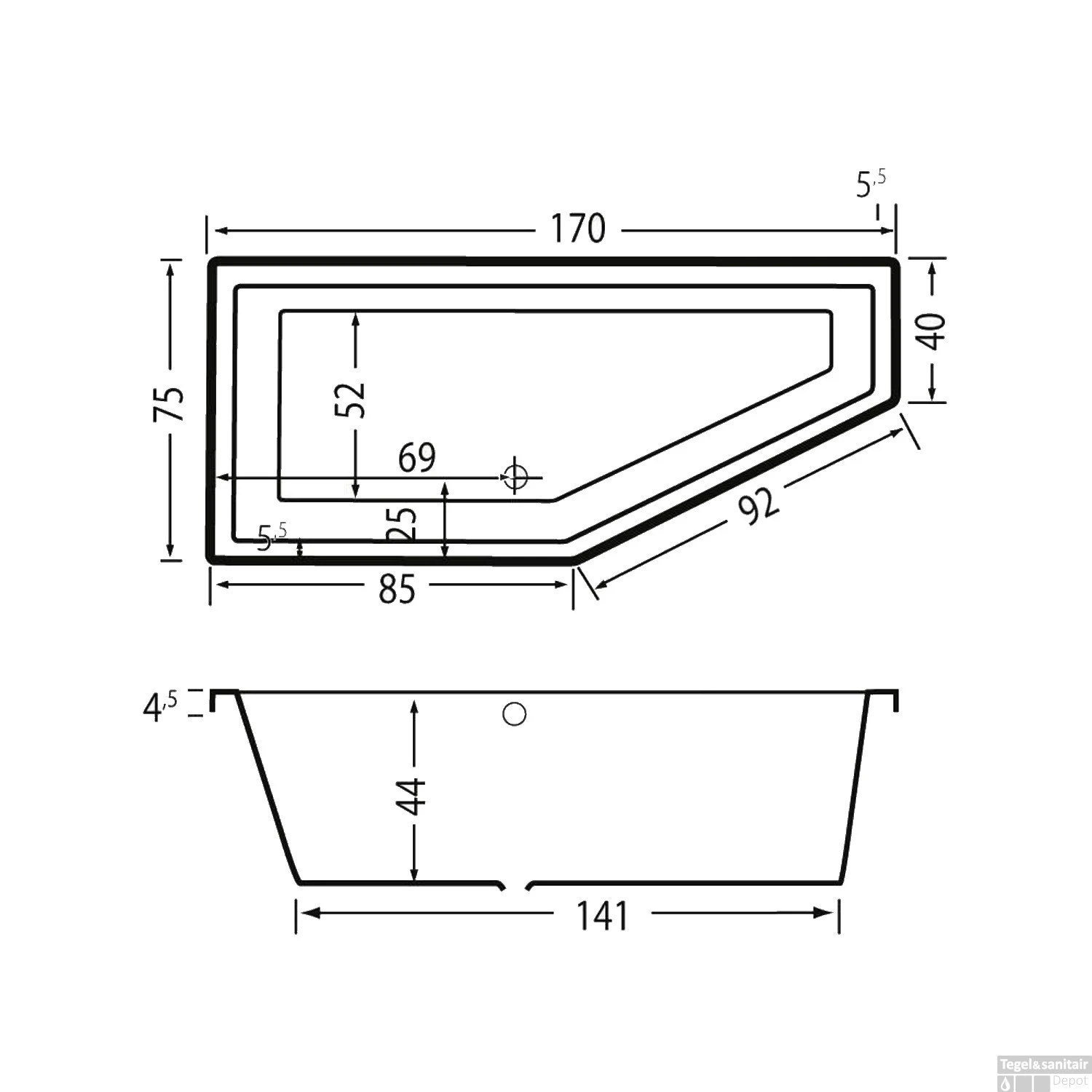 - – Bad met asymmetrische vorm