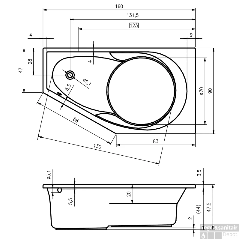 - – Afmetingen: 160 x 90 x 48 cm (L x B x H)
