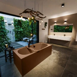 Doordat de afvoer in het midden van het bad zit, is dit een duobad. Een duobad is ideaal wanneer u graag met uw partner geniet van een ontspannend bad, zonder dat iemand die vervelende overloop in zijn rug heeft zitten.