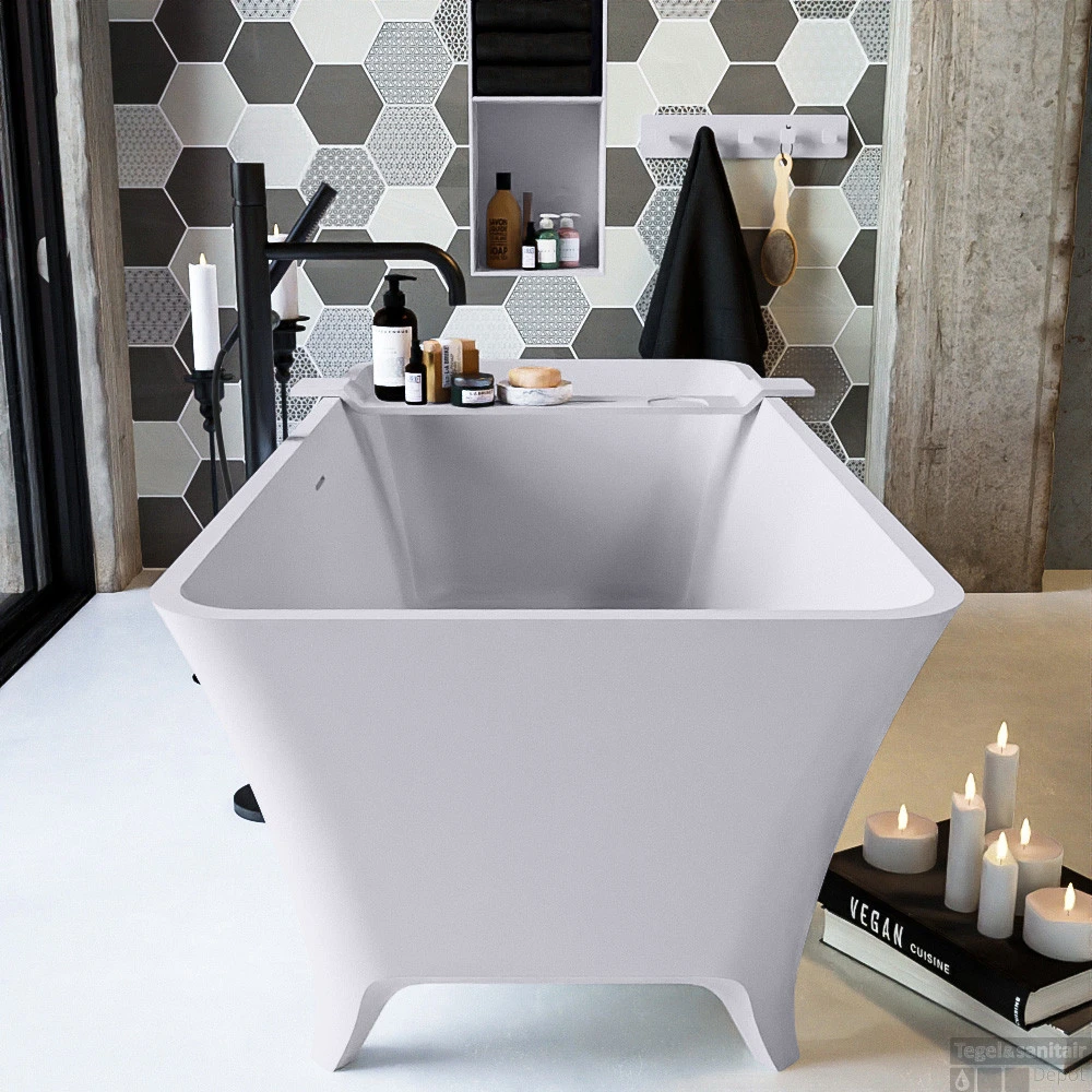 Een bad op pootjes die geweldig staat in elke badkamer. De vorm leent zich voor vrijstaand en half vrijstaand. Deze schitterende opstelling is gecombineerd met het badmeubel VICA zowel de Solid Surface wastafel als het meubel kan in exacte dezelfde kleur als het bad. Zo breng je kleur in je badkamer.