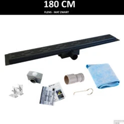 Specificaties Zwarte Douchegoot met Flens en Sifon 180x7cm 6,7cm Diep: