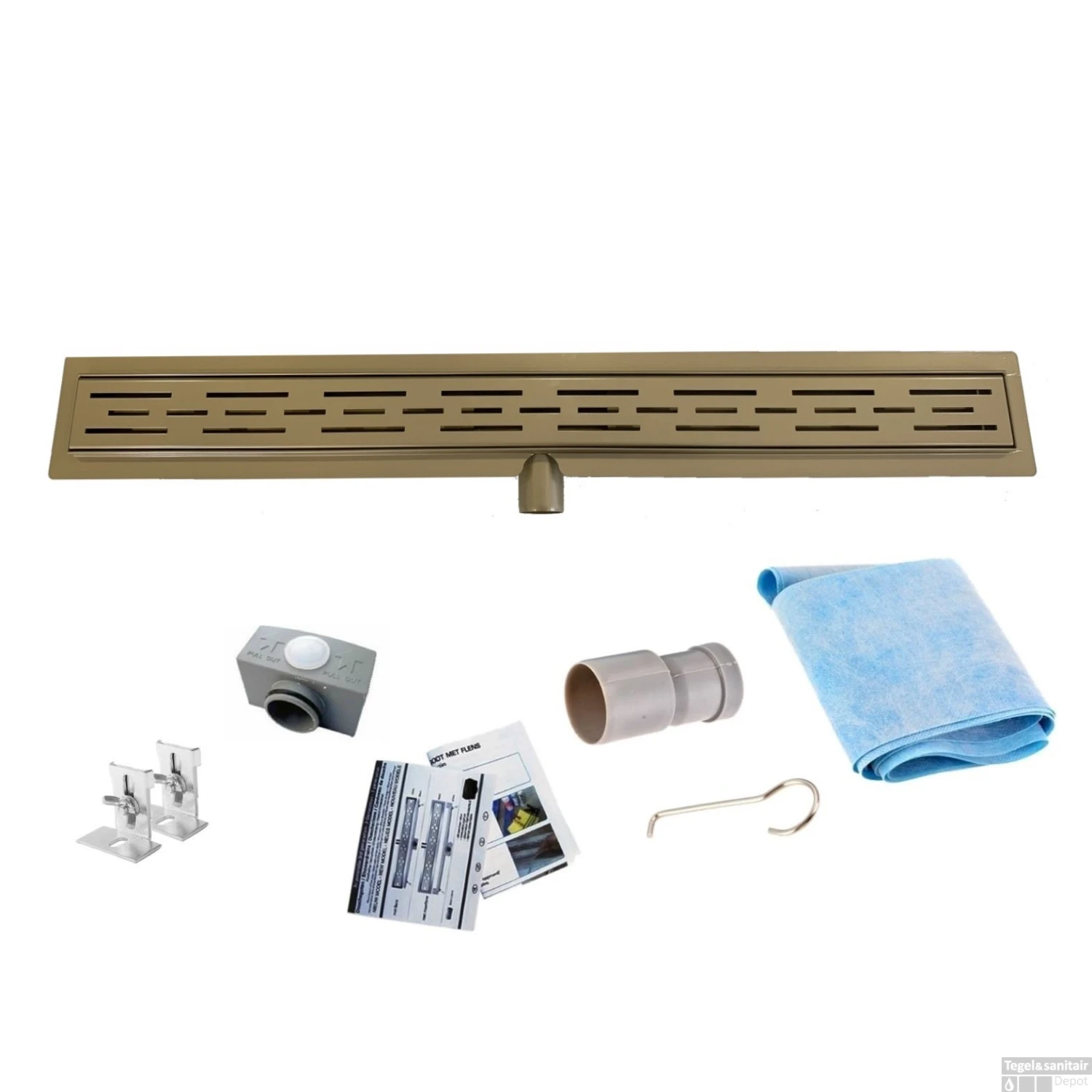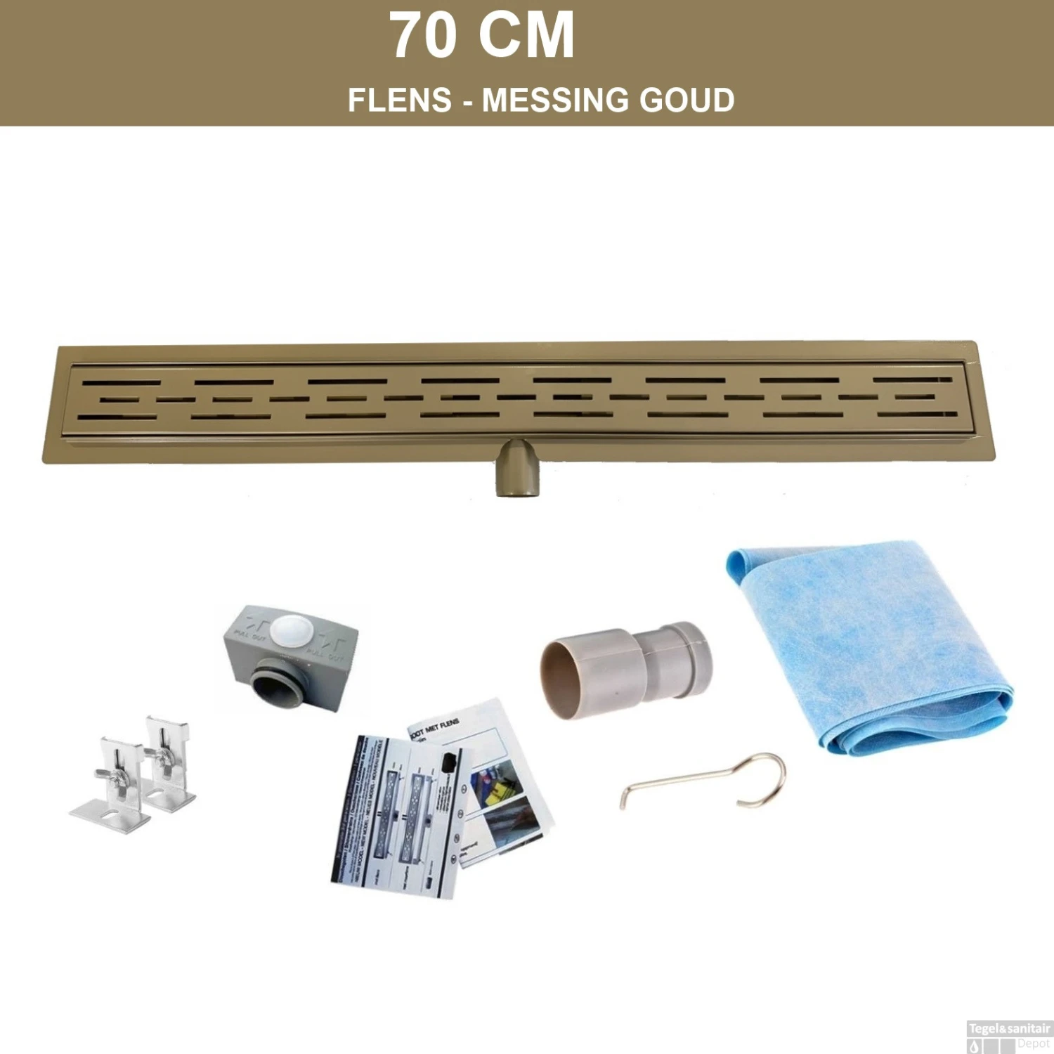 Messing Goud RVS Douchegoot Flens met Uitneembaar Sifon 70x7cm 6,7cm Diep MESSING GOUD ROOSTER