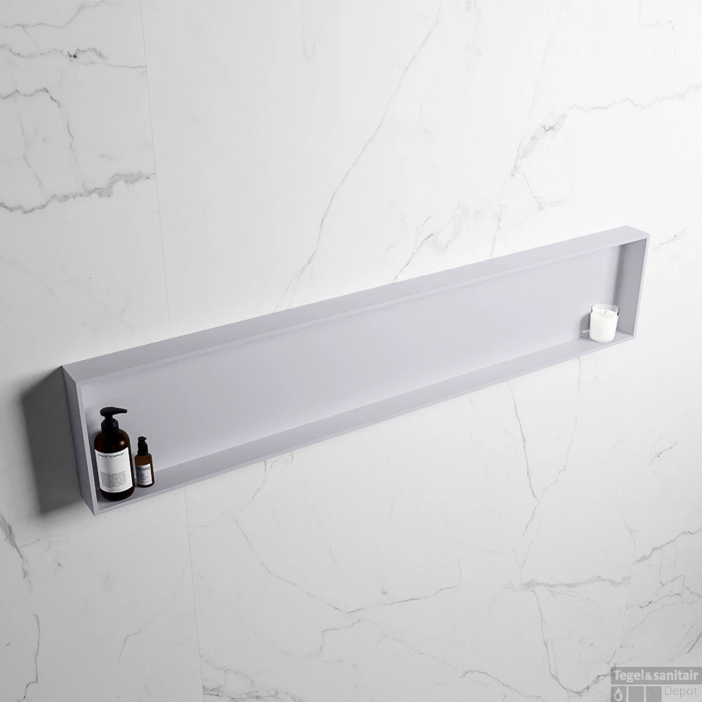 De Solid Surface inbouw nis is een aanwinst voor iedere badkamer of toilet en met alle verschillende maten en kleuren ook een mooie en efficiënte accessoire. De Mondiaz nis neemt geen extra ruimte in omdat de nis ingebouwd kan worden maar je kan hem ook eenvoudig rechtstreeks op de muur bevestigen. Zo staan al je douche of badproducten binnen handbereik. De Mondiaz Solid Surface (inbouw) nis mag daarom niet ontbreken in de badkamer of toiletruimte waar de ruimte vaak beperkt is. De nis is daarbij een mooie functionele ruimtebesparing en het ideale product om jouw mooie spulletjes in uit te stallen.