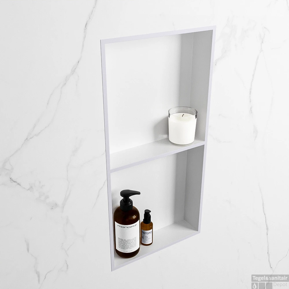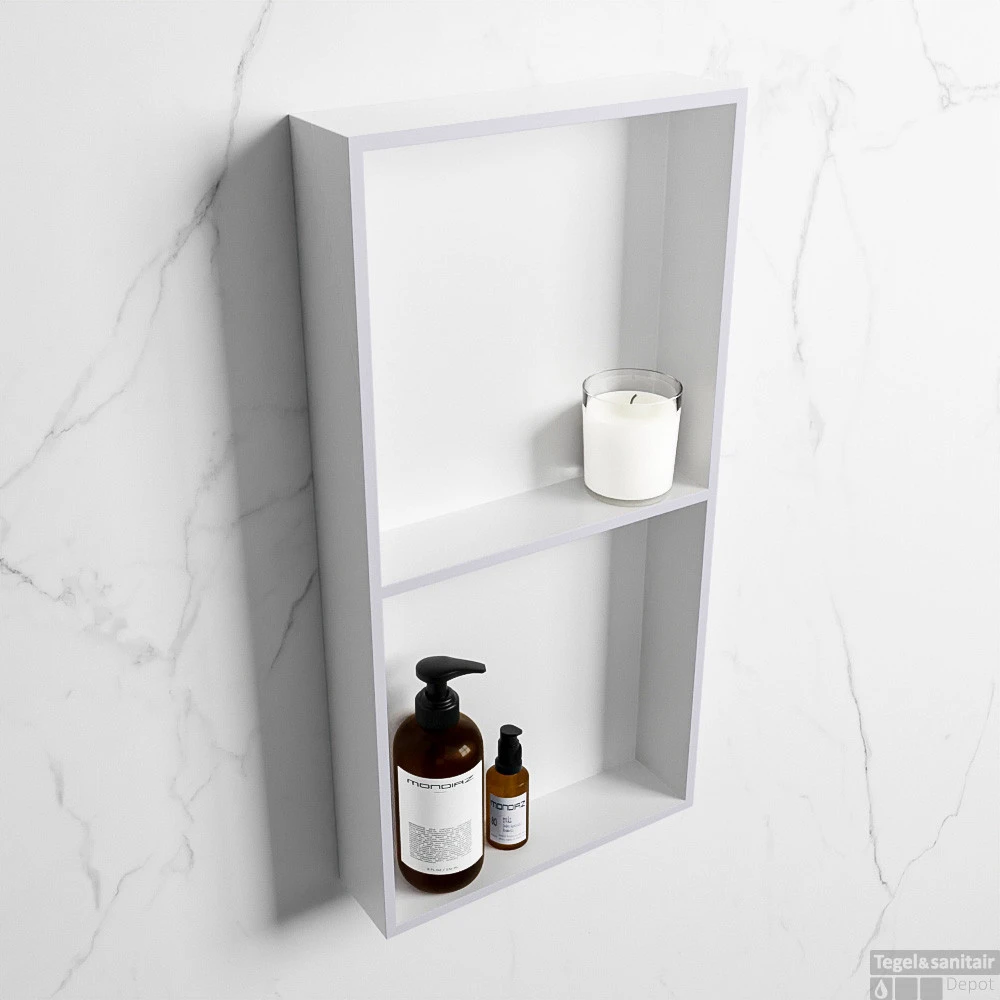 De Solid Surface inbouw nis is een aanwinst voor iedere badkamer of toilet en met alle verschillende maten en kleuren ook een mooie en efficiënte accessoire. De Mondiaz nis neemt geen extra ruimte in omdat de nis ingebouwd kan worden maar je kan hem ook eenvoudig rechtstreeks op de muur bevestigen. Zo staan al je douche of badproducten binnen handbereik. De Mondiaz Solid Surface (inbouw) nis mag daarom niet ontbreken in de badkamer of toiletruimte waar de ruimte vaak beperkt is. De nis is daarbij een mooie functionele ruimtebesparing en het ideale product om jouw mooie spulletjes in uit te stallen.