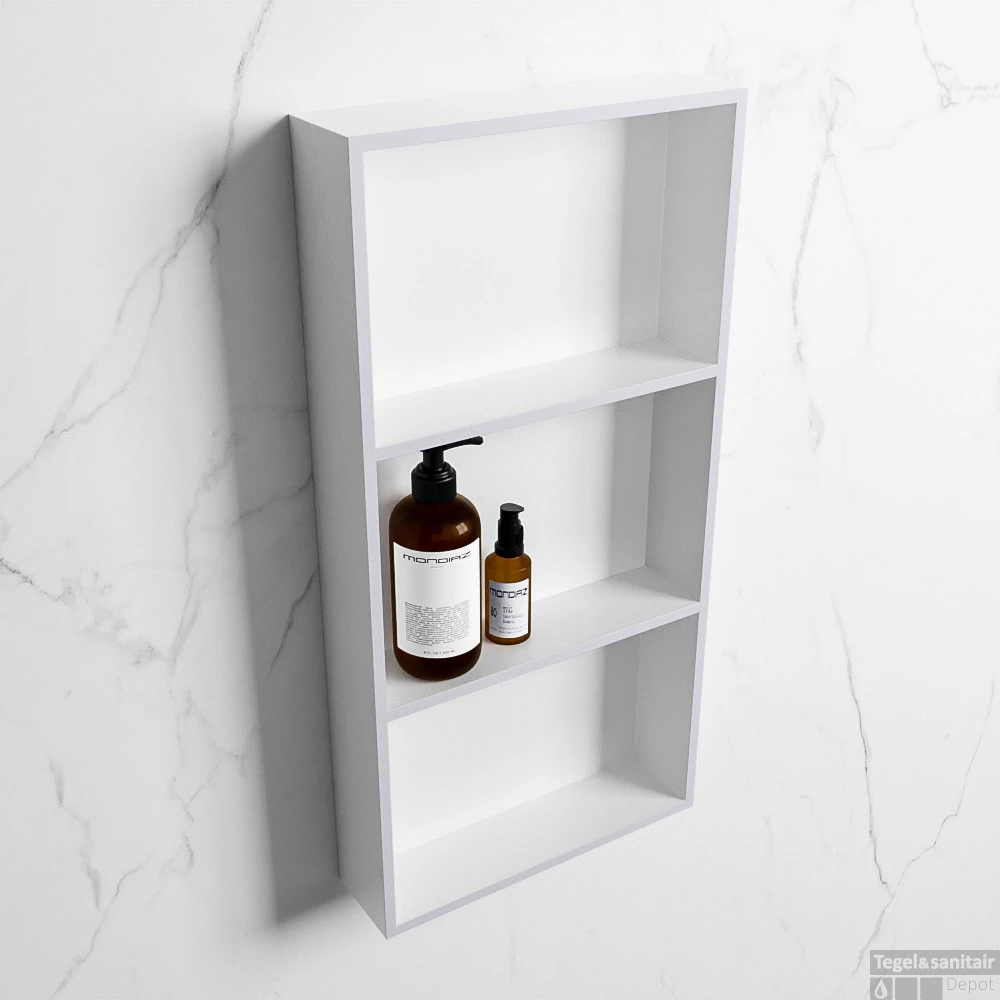 De Solid Surface inbouw nis is een aanwinst voor iedere badkamer of toilet en met alle verschillende maten en kleuren ook een mooie en efficiënte accessoire. De Mondiaz nis neemt geen extra ruimte in omdat de nis ingebouwd kan worden maar je kan hem ook eenvoudig rechtstreeks op de muur bevestigen. Zo staan al je douche of badproducten binnen handbereik. De Mondiaz Solid Surface (inbouw) nis mag daarom niet ontbreken in de badkamer of toiletruimte waar de ruimte vaak beperkt is. De nis is daarbij een mooie functionele ruimtebesparing en het ideale product om jouw mooie spulletjes in uit te stallen.