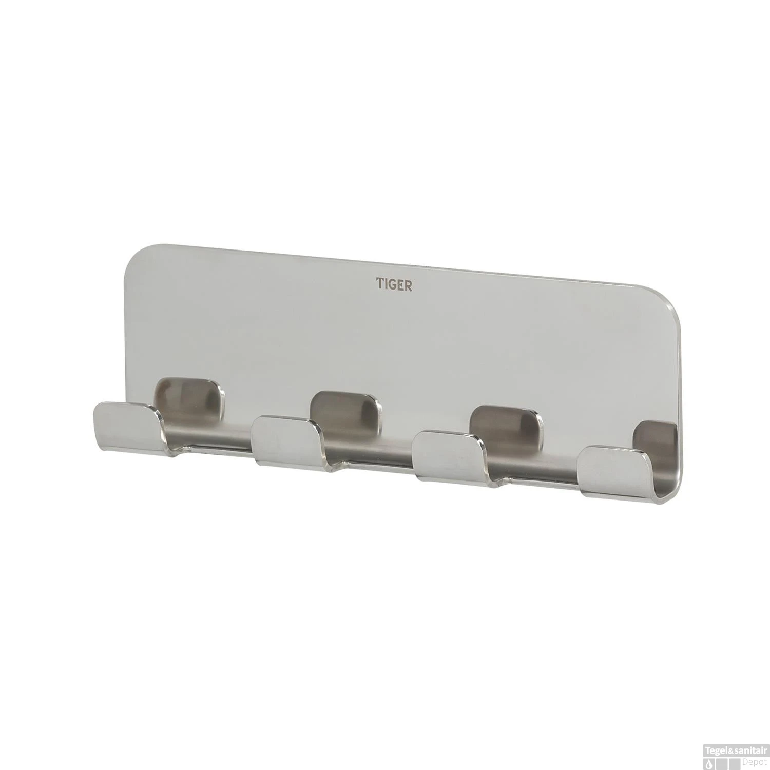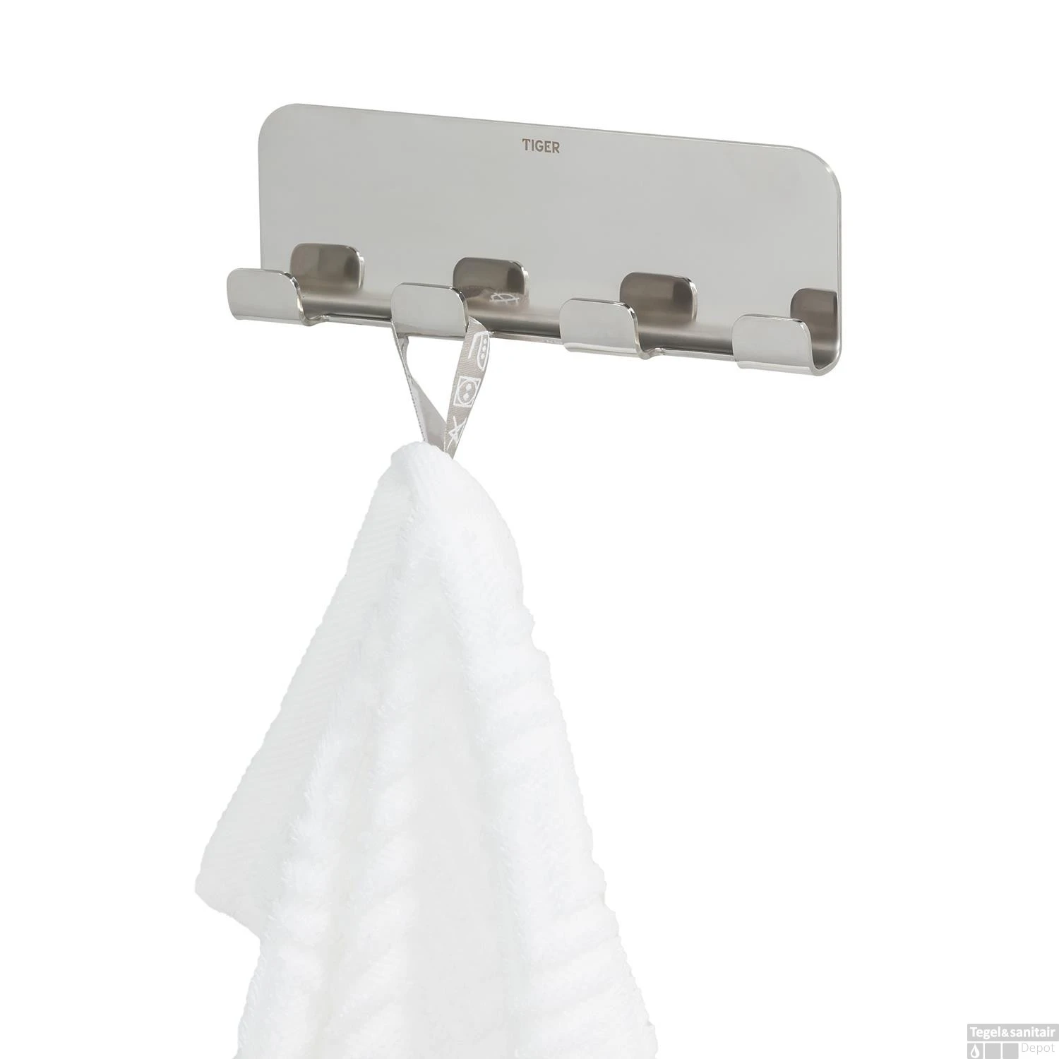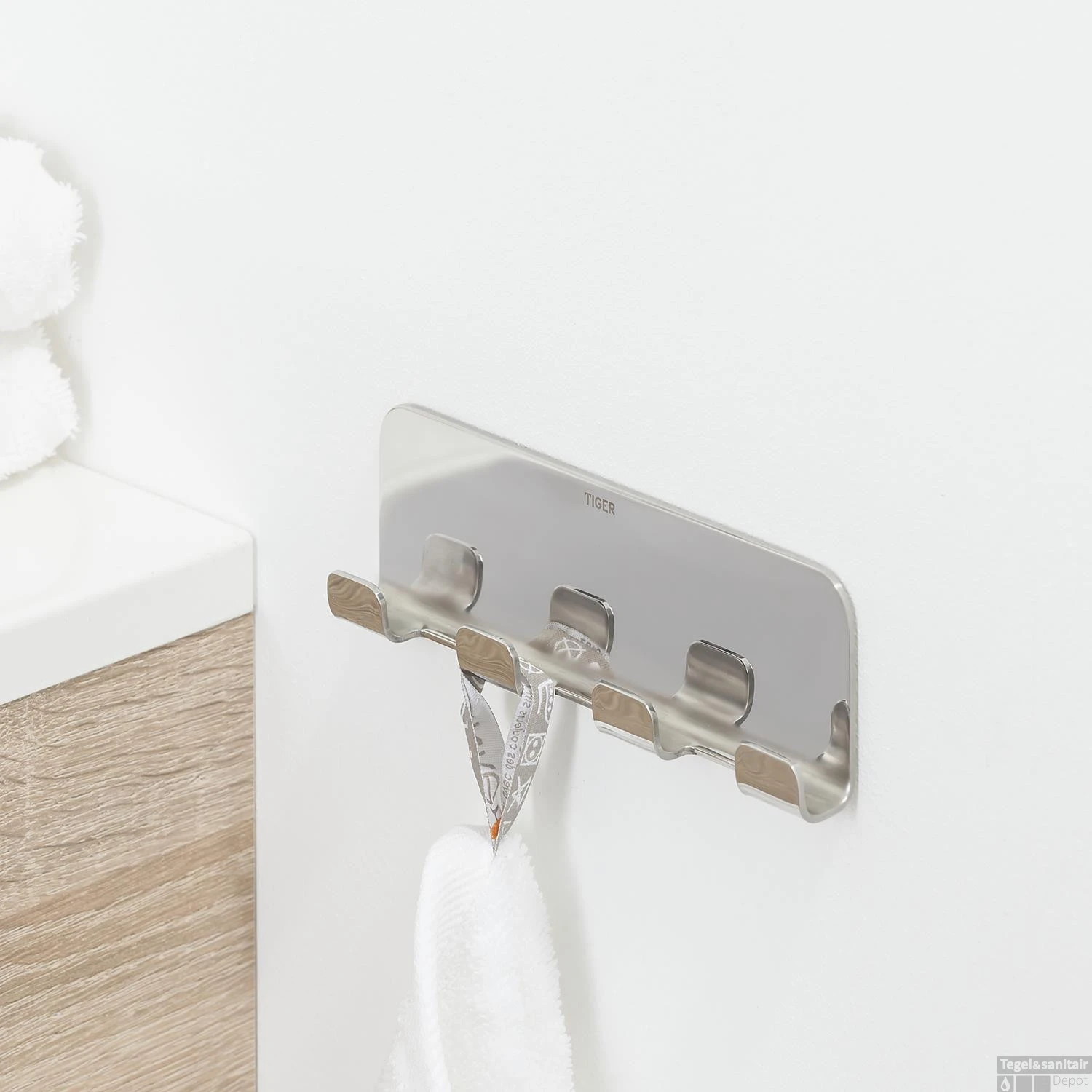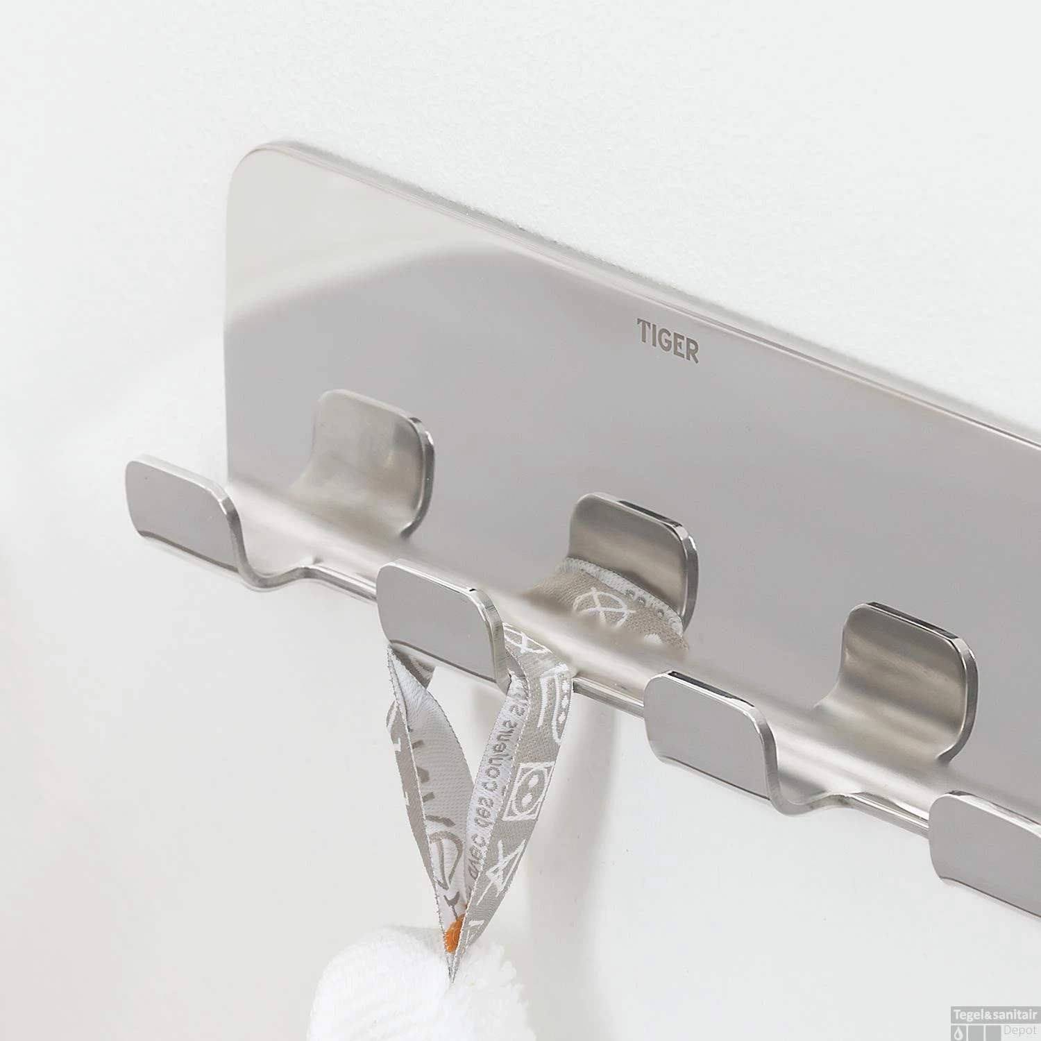 Is er nog iets beter dan één haak uit de Colar collectie? Juist. Meerdere haken. Dit hakenrek uit de Tiger Colar serie is een echte blikvanger. Met de krachtige, dubbelzijdige 3M tape monteer je hem met gemak aan de muur. Jouw handdoeken verdienen het om mooi opgehangen te worden. Vind je ook niet? Maak de look compleet met de andere accessoires uit deze serie.