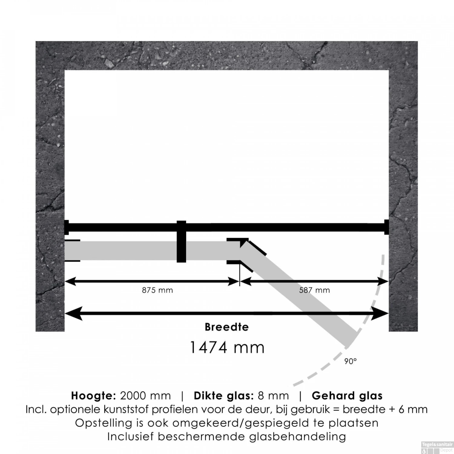 Specificaties Nisdeur Compleet Just Creating Profielloos 2-Delig (Draaideur Bevestigd op Inloopwand) 150×200 cm 90/60 Goud: