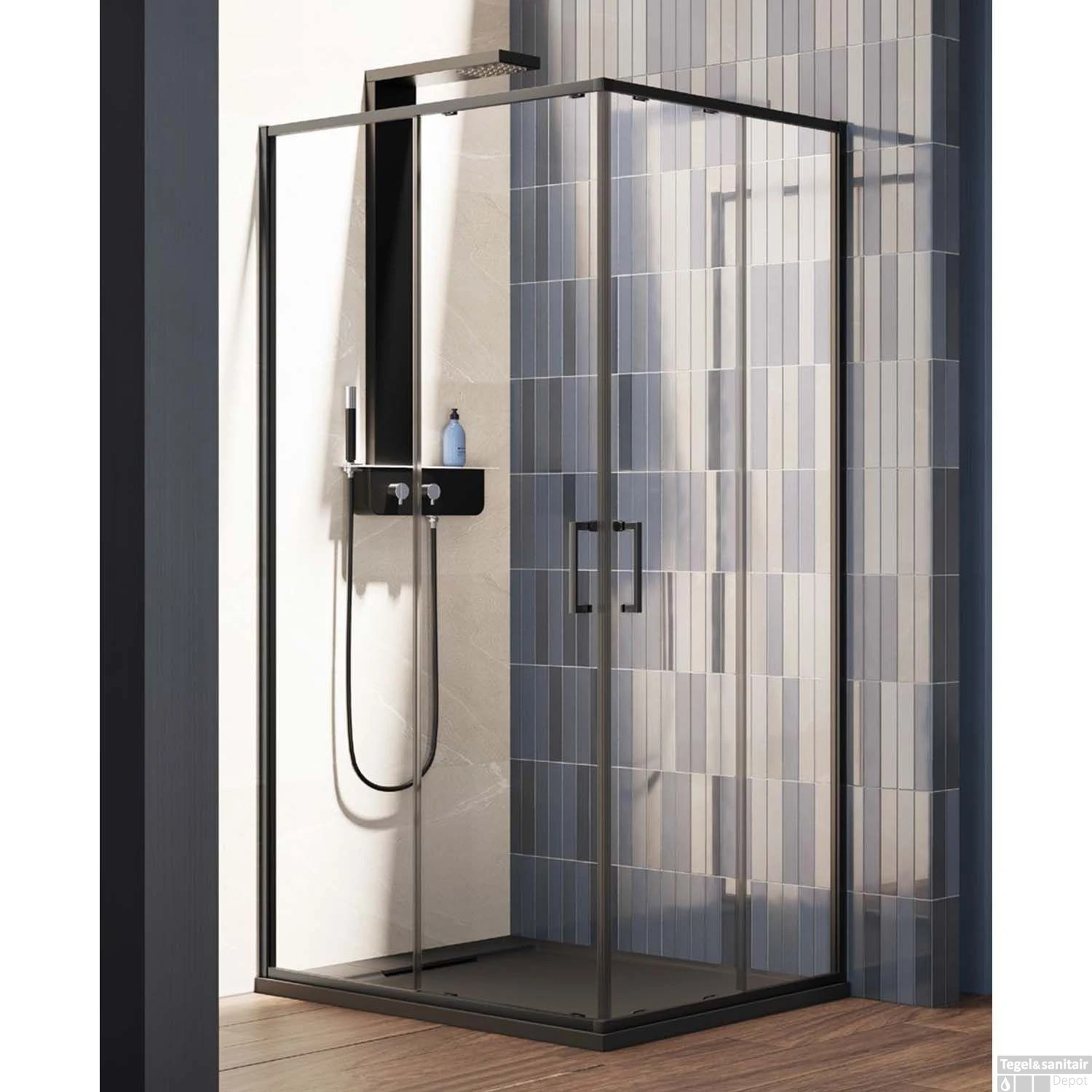 De douchedeur met twee aluminium scharnieren van het merk Lacus is een mooie keuze in de badkamer. Deze zijn uitgevoerd in een mooie Mat Zwarte kleur. De serie kenmerkt zich door zijn strakke uiterlijk en het heldere glas ook wel transparant crystal genoemd. Hierdoor ontstaat er een moderne uitstraling. De deur bestaat uit twee delen waarvan je er een in kan schuiven.