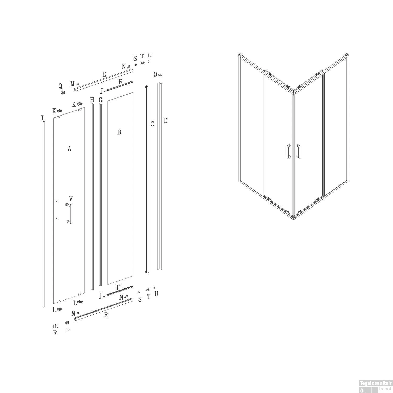 U kunt de douchedeur van 200 cm hoogte plaatsen met een het muurprofiel. De deur is zowel links als rechtsom te plaatsen.