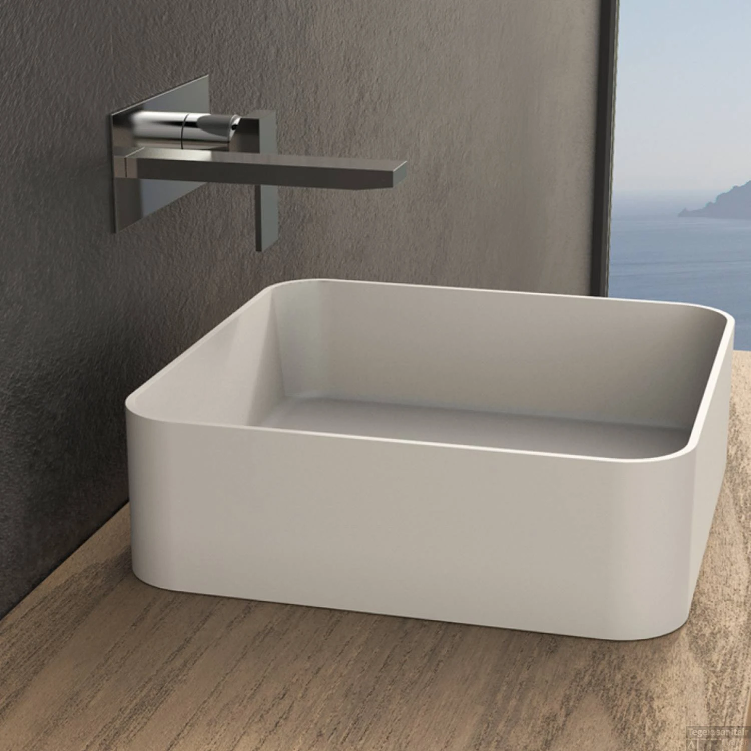 Opbouwwastafel Ideavit Solidthin 40x40x12.5 cm Solid Surface Mat Wit