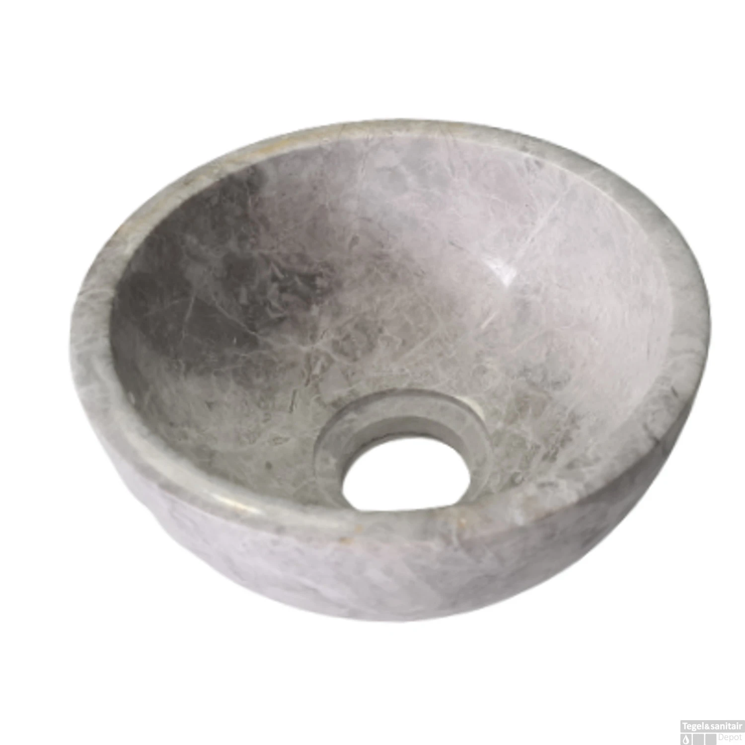 Deze opzetfontein is gemaakt van Natuursteen, hij heeft een grijze kleur met een marmer print. De waskom heeft een diameter van 20 cm en een hoogte van 9,5 cm. Deze waskom is precies groot genoeg om op een fonteinplankje te plaatsen. De waskom wordt niet geleverd met bevestigingsmateriaal en is niet voorzien van een overloop. Belangrijk, voor een langere levensduur van dit artikel wordt er aangeraden om dit niet schoon te maken met heftige schoonmaakmiddelen. Dit beschadigd namelijk de toplaag van de waskom. Hierdoor zal deze minder lang mee gaan.