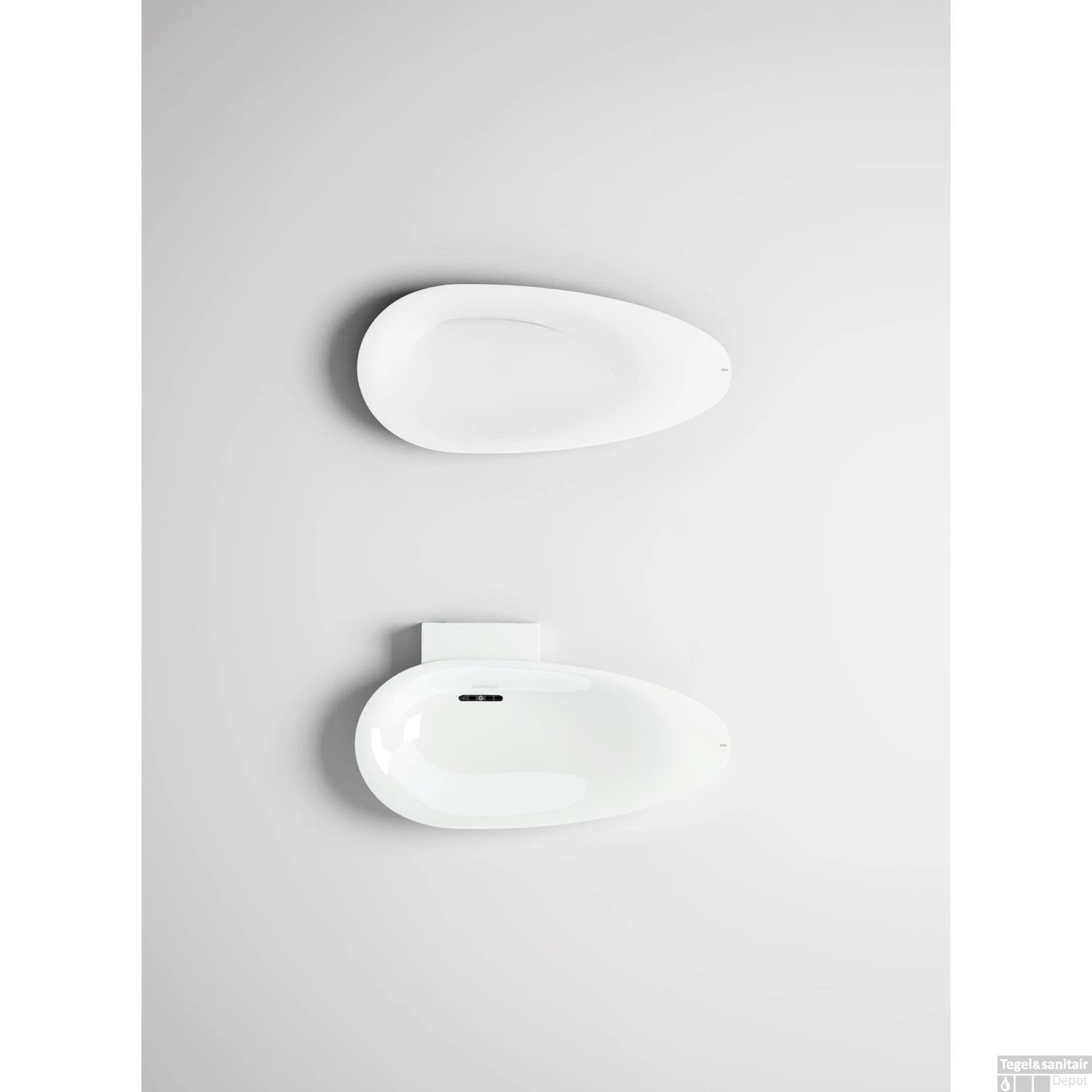 Deze wastafel wordt zonder kranenbank aan de achterkant geleverd. Dit is een extra plateau aan de wastafel waar een kraan gemonteerd kan worden. Bij deze variant is alleen een inbouwkraan in de muur mogelijk. Er zijn natuurlijk ook varianten beschikbaar met een kranenbank. De variant zonder kranenbak is alleen te plaatsen op een wastafel plateau of wastafelmeubel. De varianten met kranenbak worden hangend aan de wand gemonteerd.