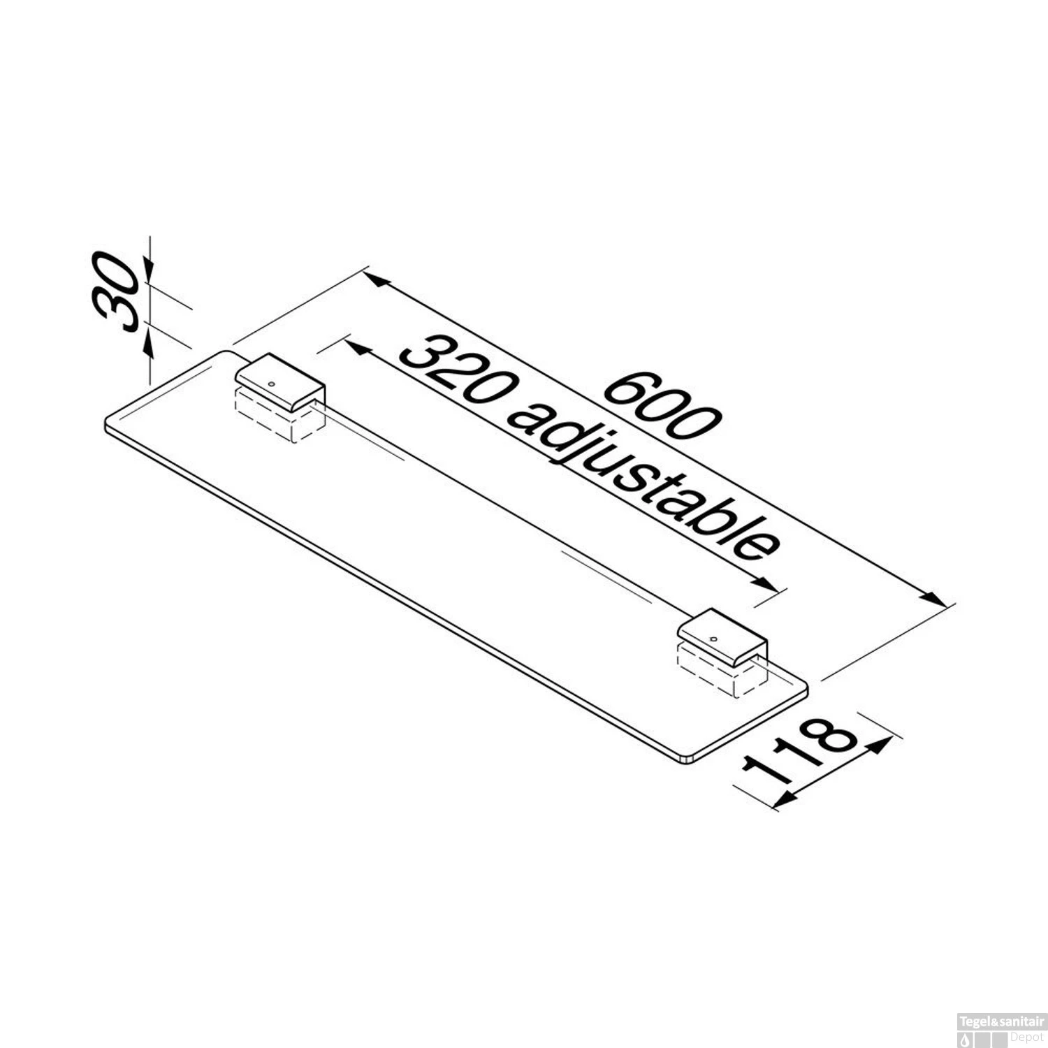Als u extra opbergruimte nodig heeft, maar wel met een minimalistische look is dit planchet van Geesa AIM een goede keuze. Het is een dunne glasplaat in twee houders die u op de muur bevestigt. Dit doet u met het bijgeleverde bevestigingsmateriaal. De plank is 60 cm lang en 11,8 cm breed. Hij is van messing in chroomkleur en glas.