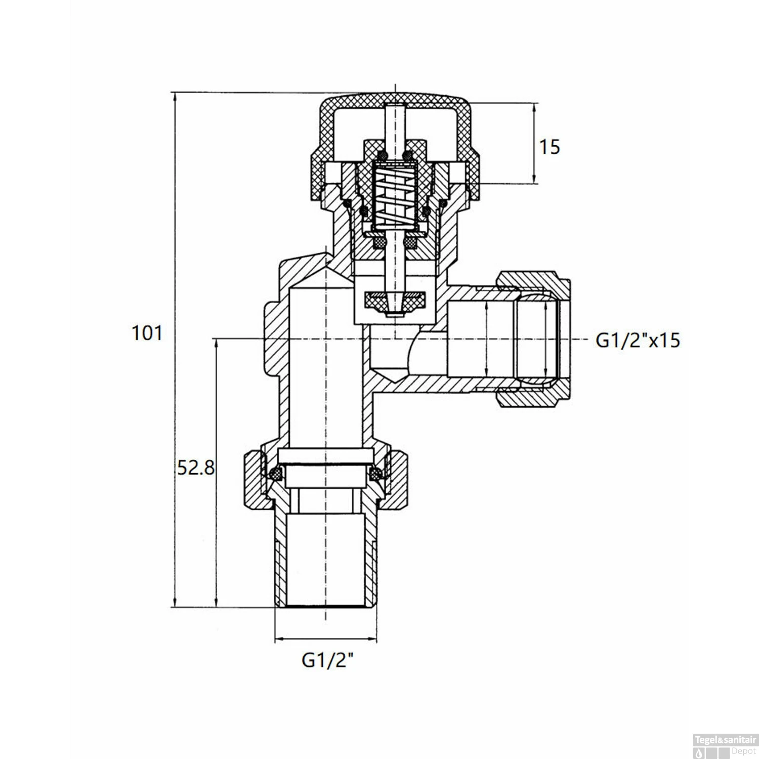 Radiatorventiel Thermostatisch Riko 1/2”x15 Mm Axiaal Mat Zwart