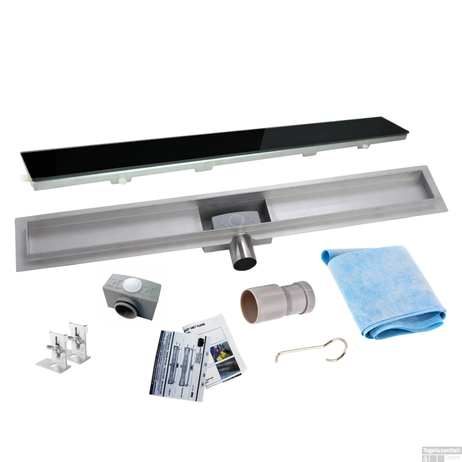 RVS Douchegoot flens met uitneembaar sifon 60x7cm 6,7cm diep GLAS ROOSTER