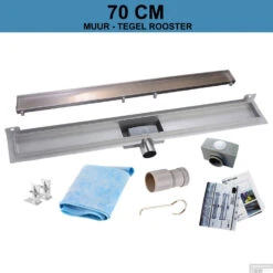 RVS Douchegoot Muurflens met uitneembaar sifon 70x7cm 6,7cm diep TEGEL ROOSTER