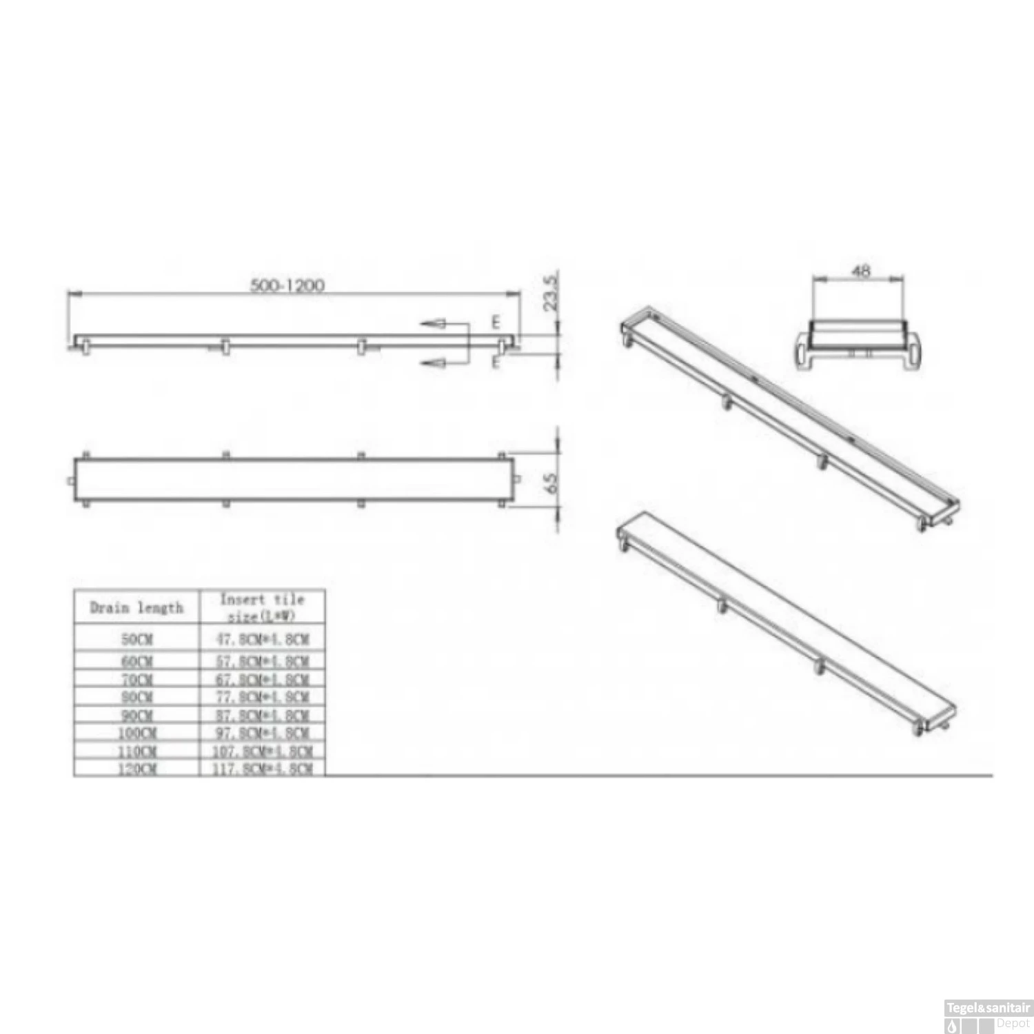 Specificaties RVS Tegelrooster t.b.v. Wiesbaden Douchegoot 80×7 cm: