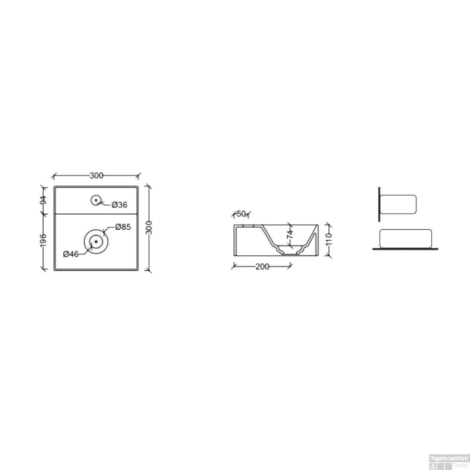 In het fonteinbakje zit geen overloop verwerkt. Er wordt een bijpassende waste bij geleverd in de zelfde kleur als het keramiek. Het bakje kan zowel hangend aan de muur of neergezet op een onderkast worden.