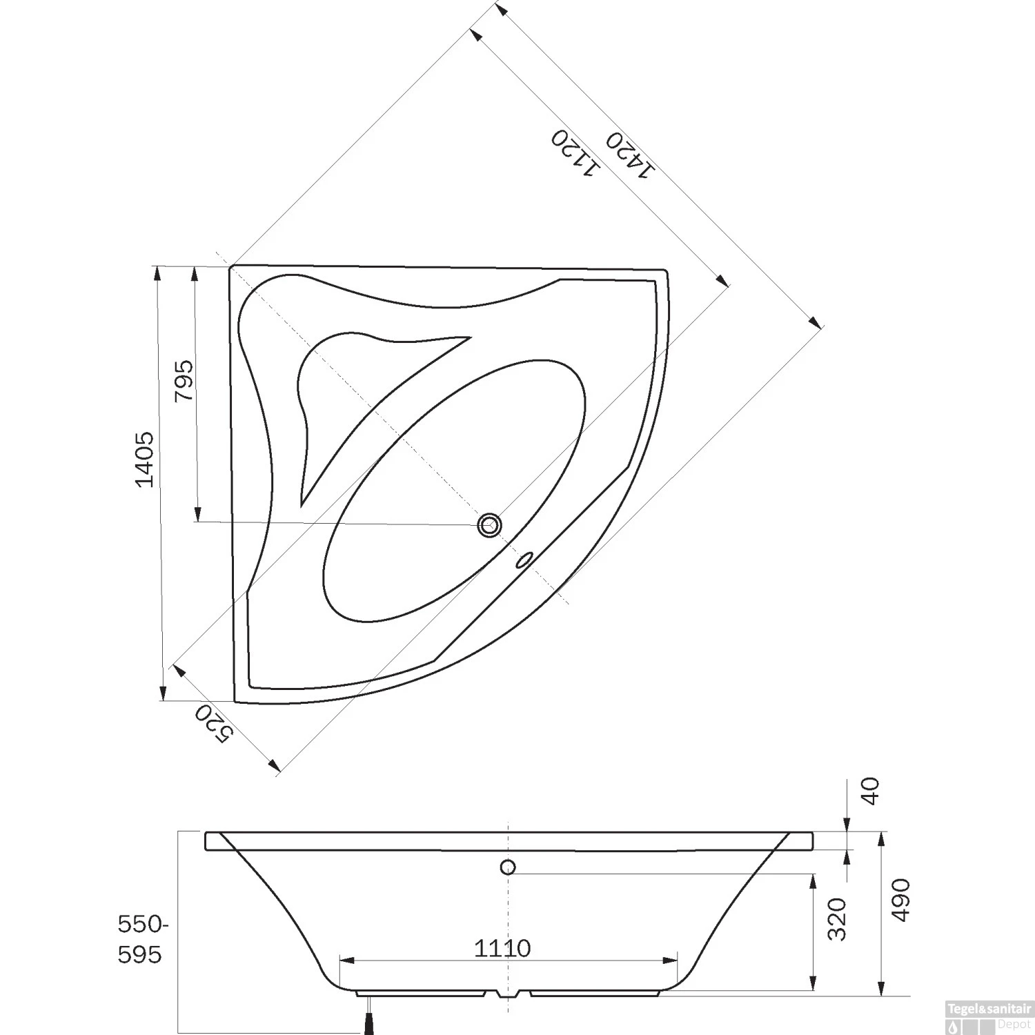 Specificaties Sealskin Ligbad Glamour Hoekbad 140×140 cm Wit