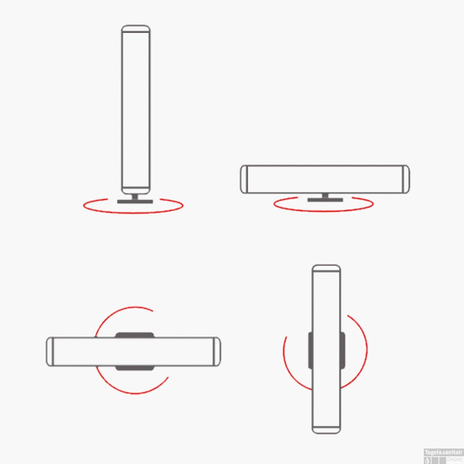 Met de slimme voet zijn er 4 posities mogelijk. Staand of tegen een wand, zowel horizontaal als verticaal. Koppel uw iPhone of SmartPhone via Bluetooth en start uw favoriete APP. Stream uw persoonlijke muziek en geniet van een verfrissende douche of een warm bad.