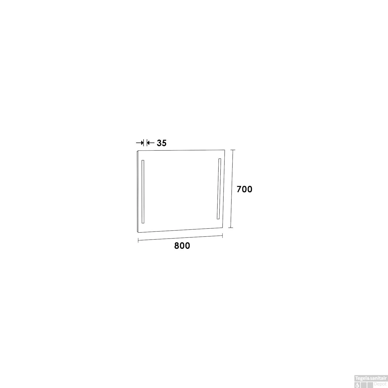 Deze rechthoekige spiegel uit de Deline serie is 80 cm breed, 70cm hoog en het beschikt over geïntegreerde LED-verlichting. Deze kunt u door middel van een schakelaar bedienen. Aan de zijkanten bevat de spiegel geborsteld aluminium. Overigens kan de spiegel horizontaal of verticaal gemonteerd worden.