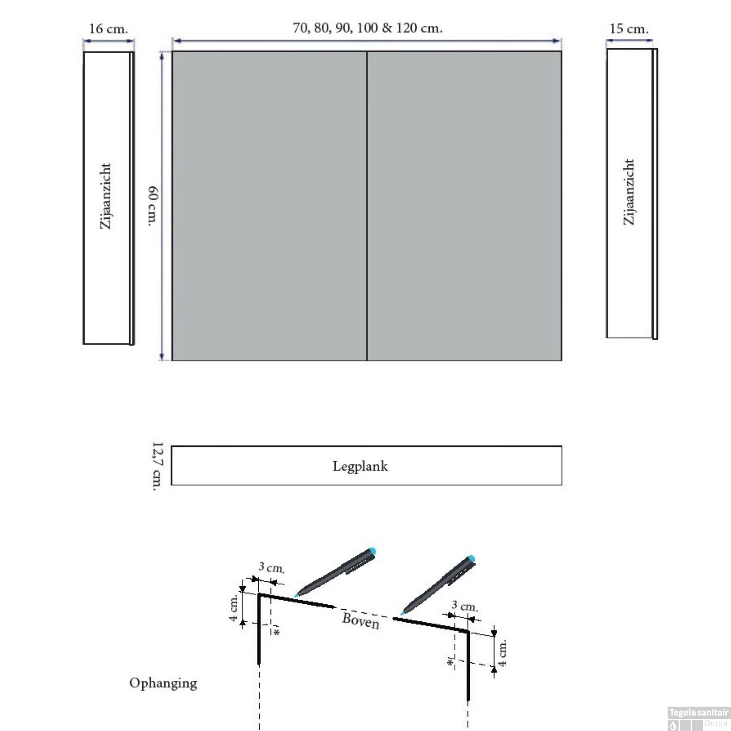 - Verkrijgbaar in: 60 x 100 x 15 cm (hxbxd)