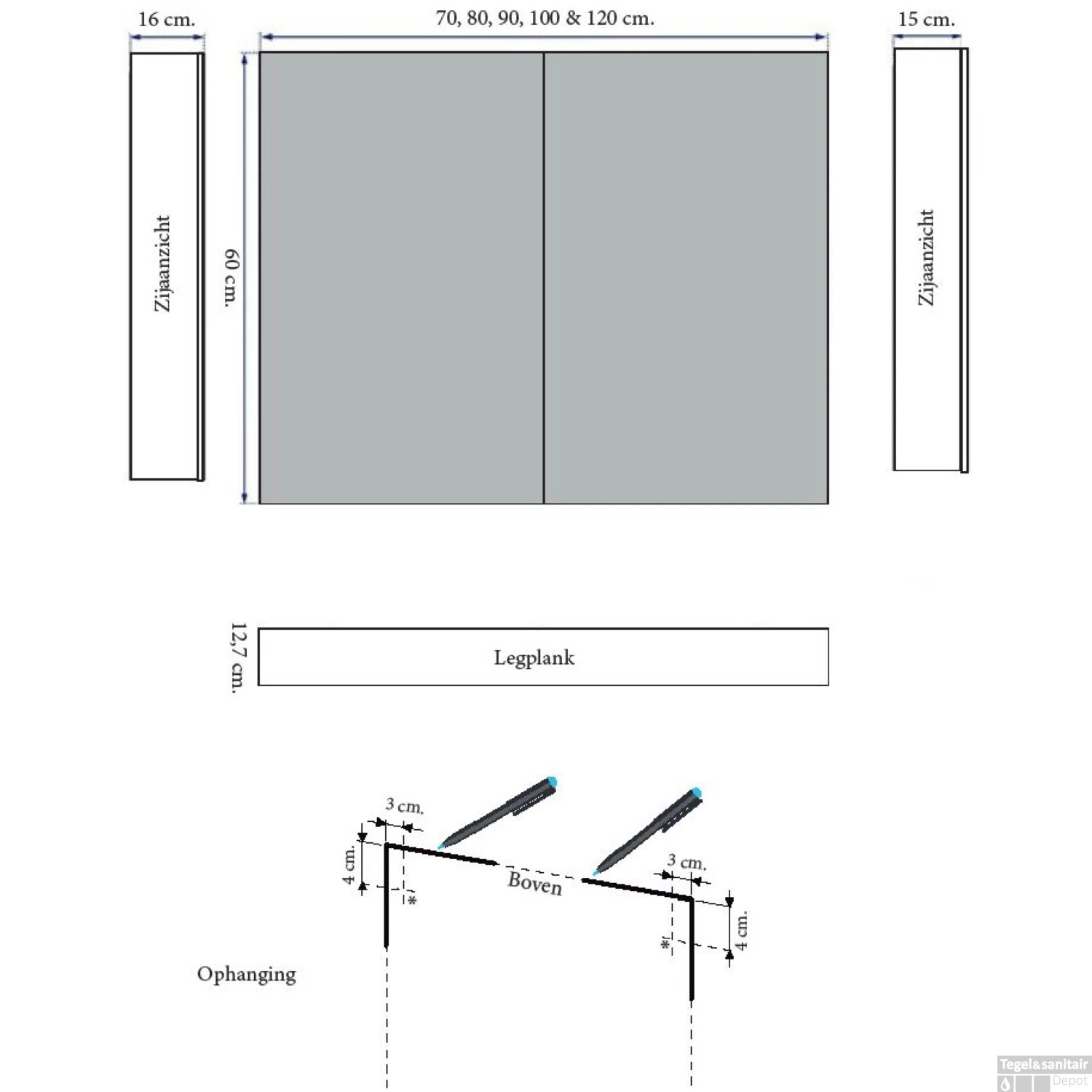 - Verkrijgbaar in: 60 x 120 x 15 cm (hxbxd)