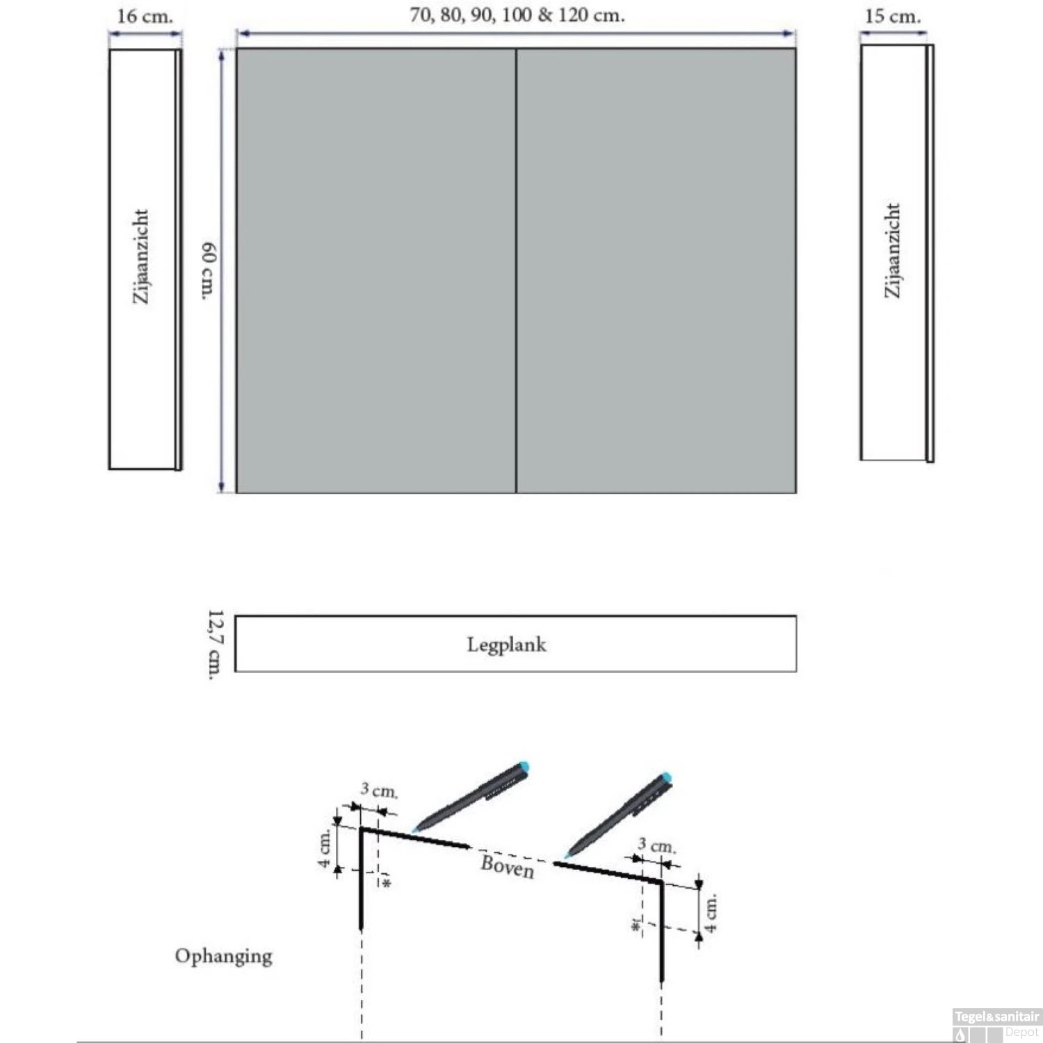 - Diepte: 15 cm