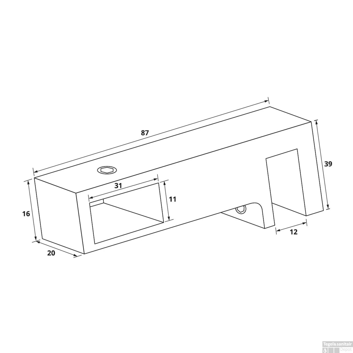 Dit T-koppelstuk is bedoeld om de stabilisatiestang te verbinden met een haakse glaswand. Gemaakt van RVS in koperkleur.