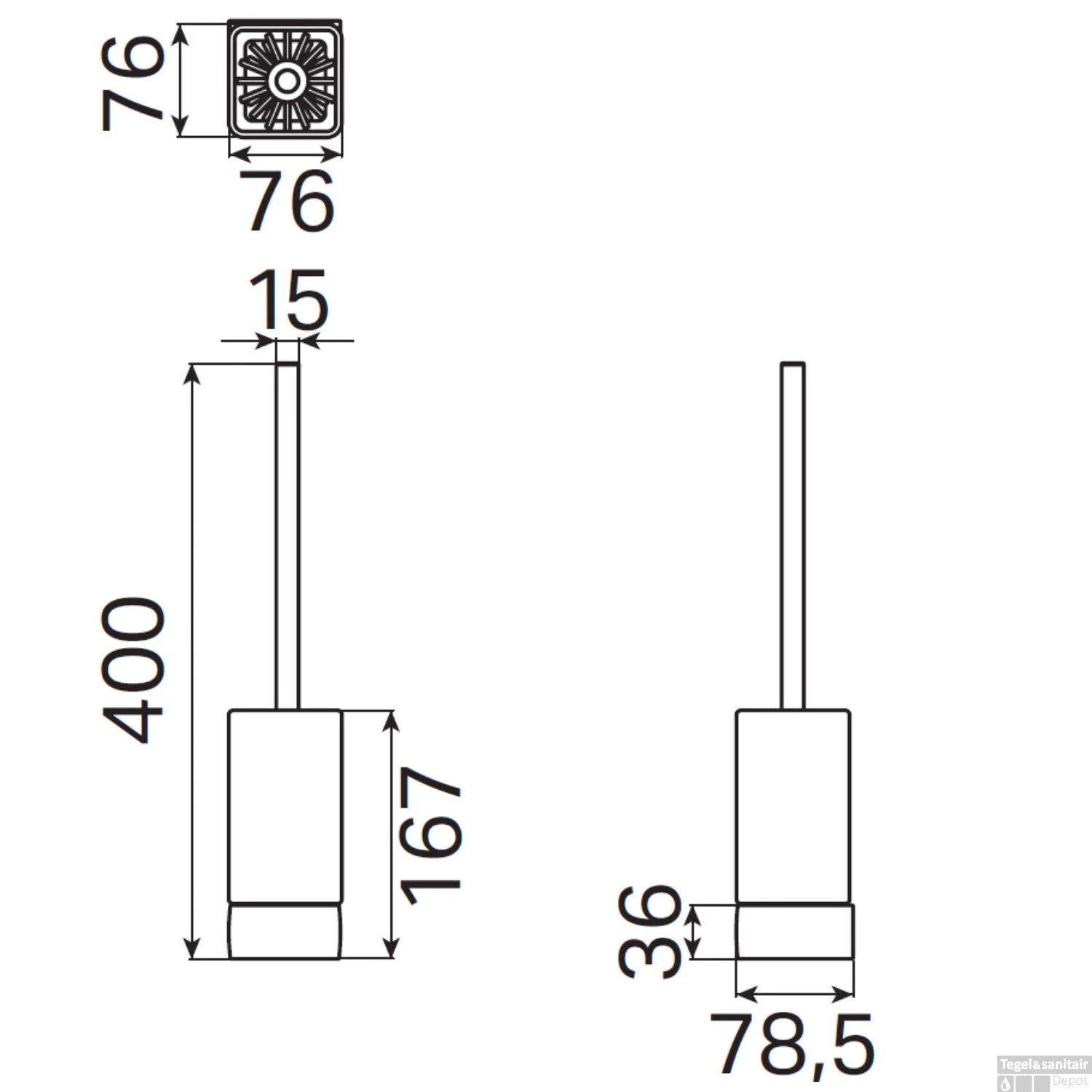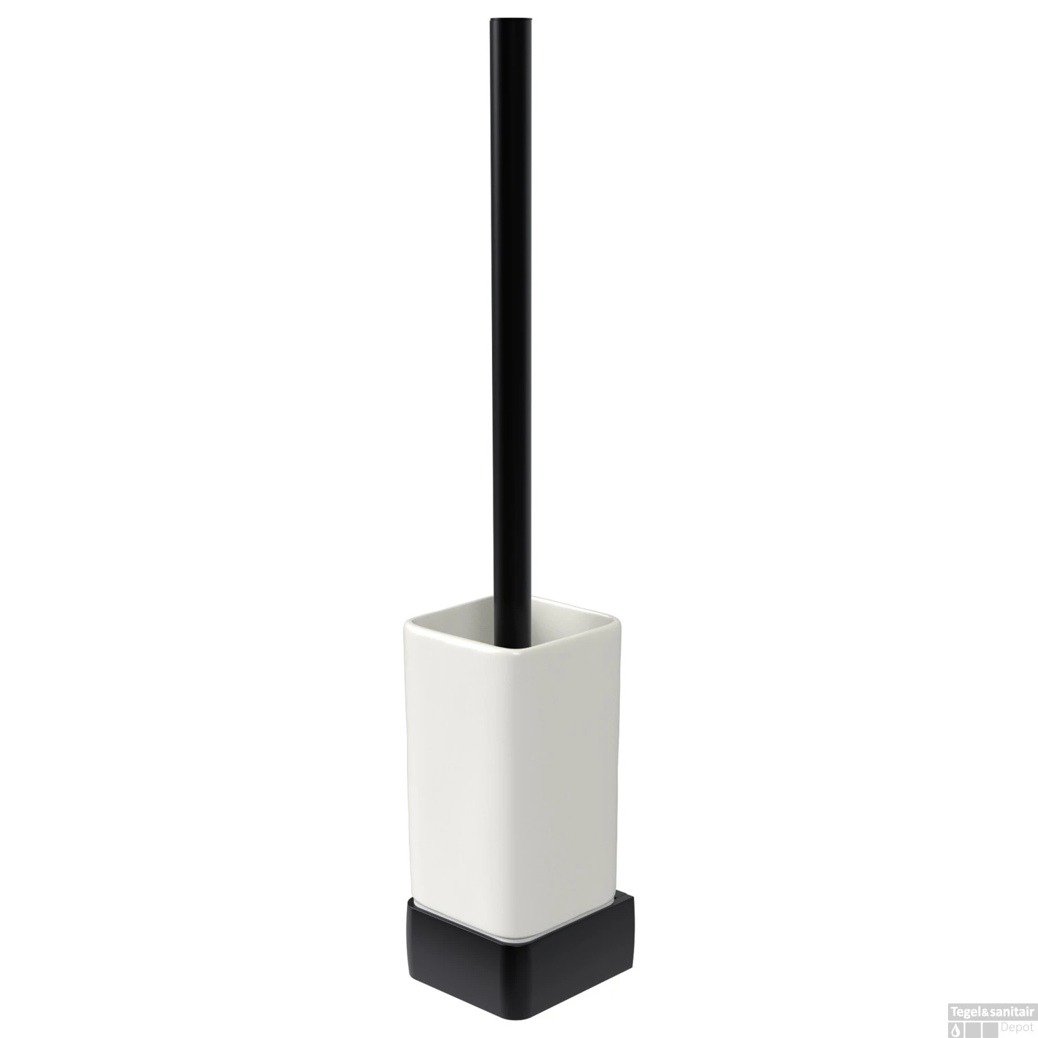 De Aline Black toiletborstelset van het populaire badkamermerk Haceka is een stijlvolle toevoeging aan uw toilet- of badkamerruimte. De totale hoogte van het artikel bedraagt 41,4 cm, terwijl het plateau waarin u de borstel bewaard een breedte van 7,4 cm en een diepte van 7,8 cm heeft. Het artikel is gemaakt van aluminium en is geproduceerd in de kleur mat zwart.