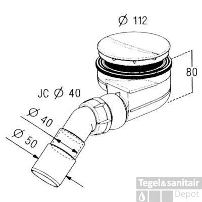 - Deze douchebaksifon is geschikt voor douchebakken met een afvoergat van 90mm.