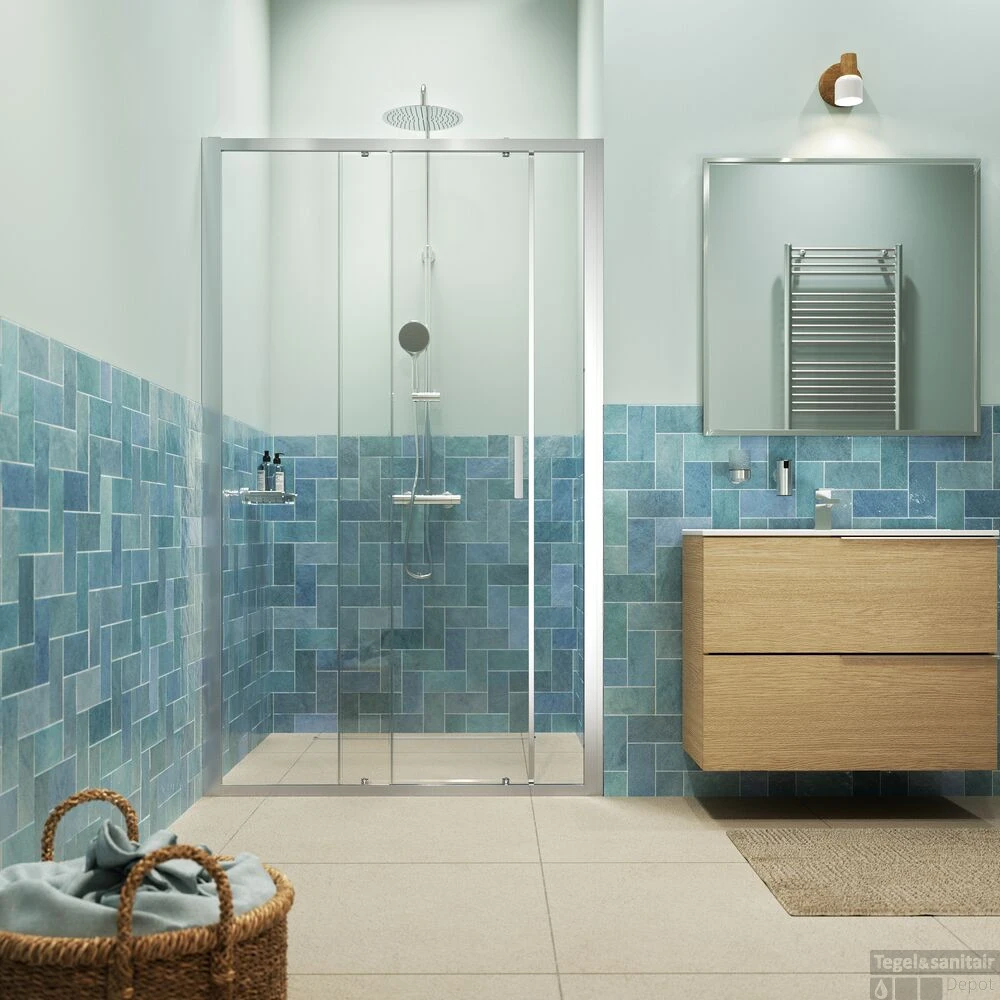Tweedelige schuifdeur in nis helder veiligheidsglas met antikalklaag Sealskin Inc. 120×200 cm Zilver
