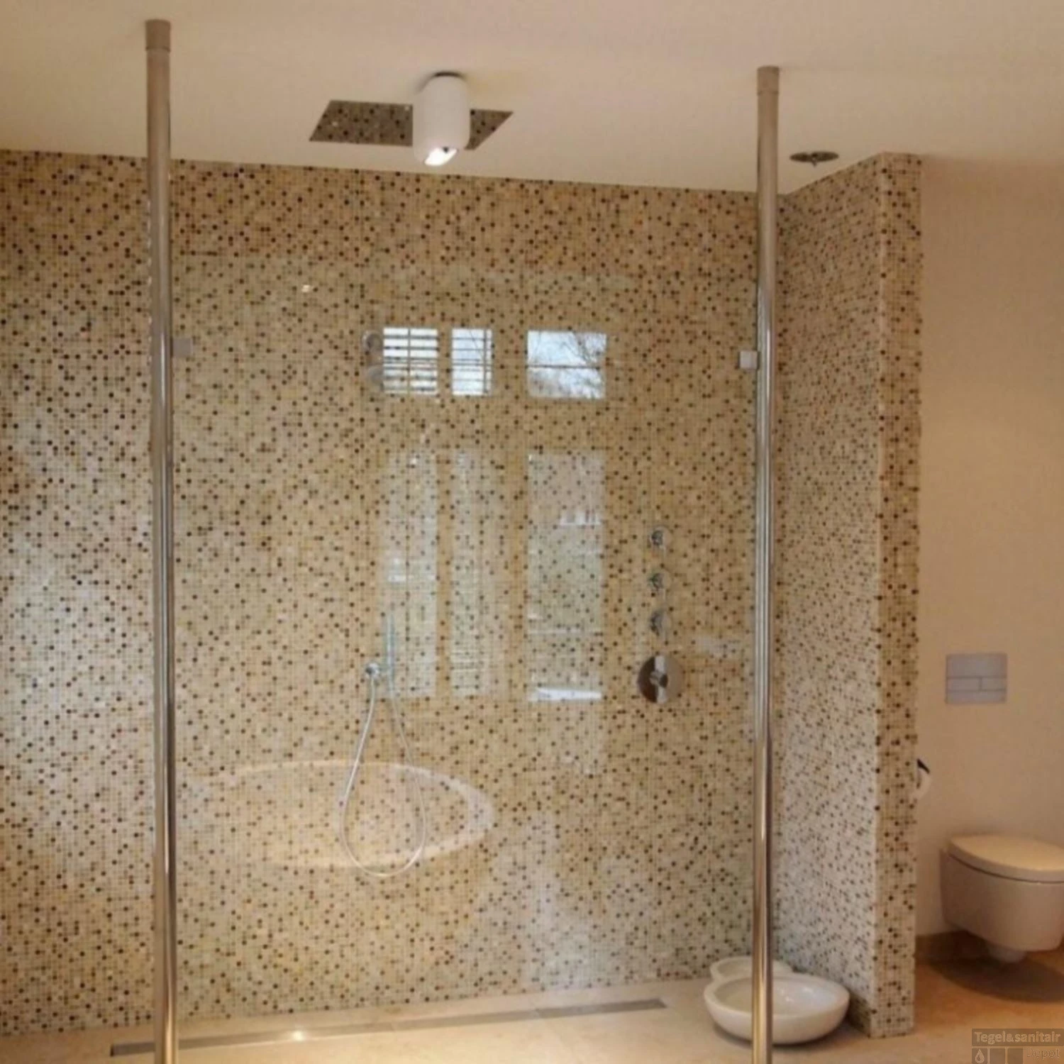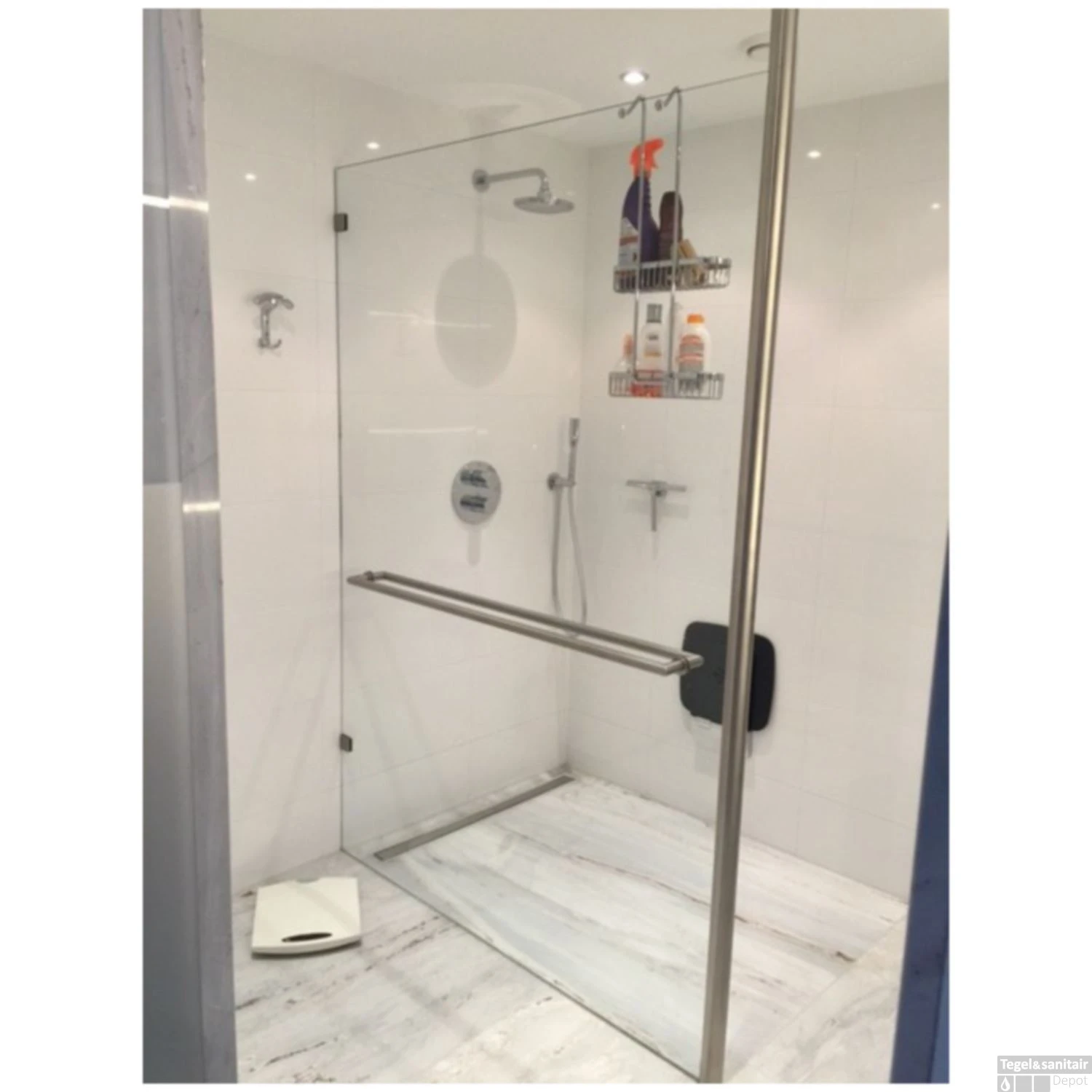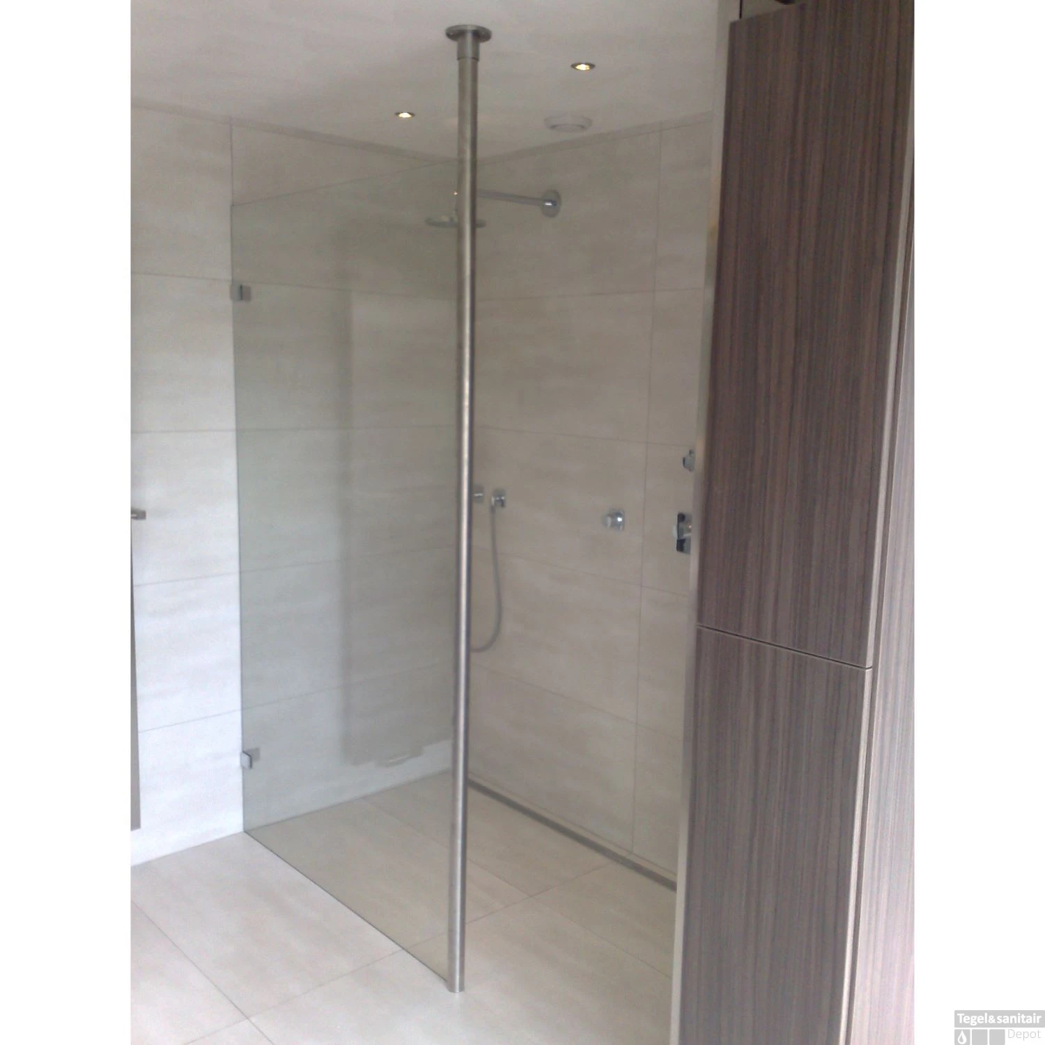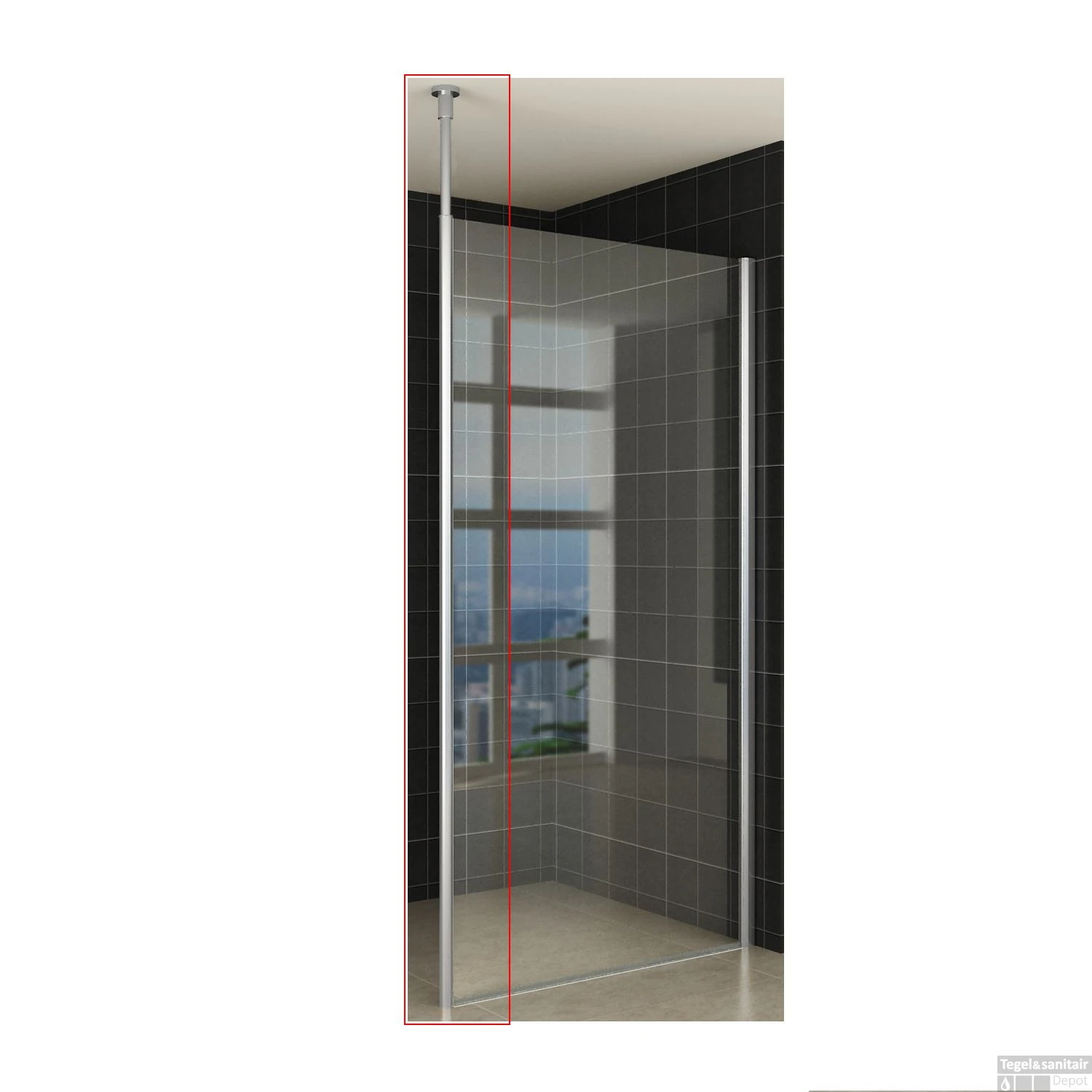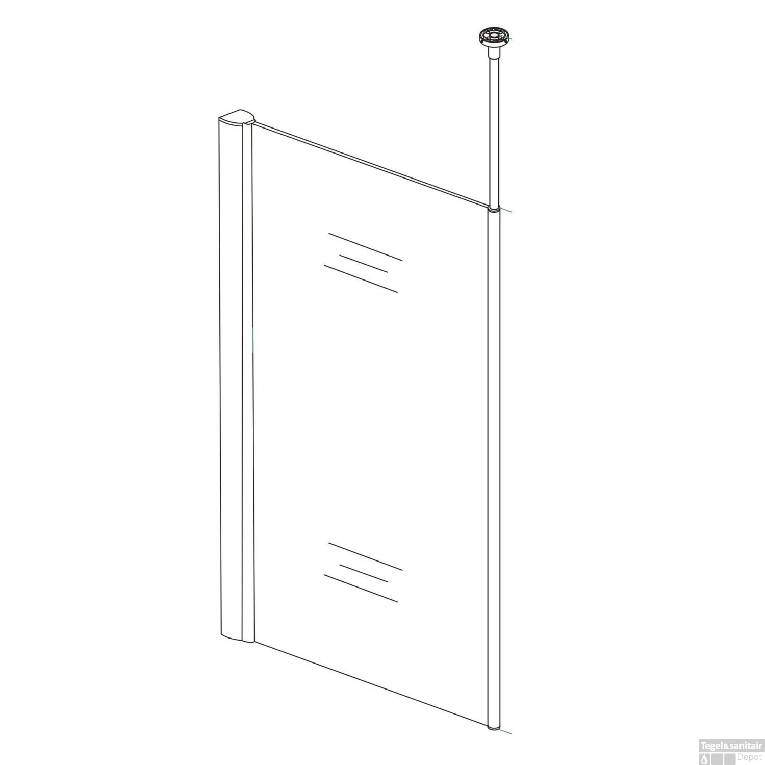 U kunt er voor kiezen om uw douchewand te bevestigen aan de muur, maar met dit model kunt u de douchewand bevestigen aan het plafond. De ronde stabilisatiestang heeft een lengte van 200 cm. het voordeel is dat hij verstelbaar is van 104.5 tot 99.5 cm. Daarom goed te gebruiken bij verschillende hoogtes van douchewanden. Het glasprofiel dient vastgekit te worden op een 10mm dikke glasplaat.