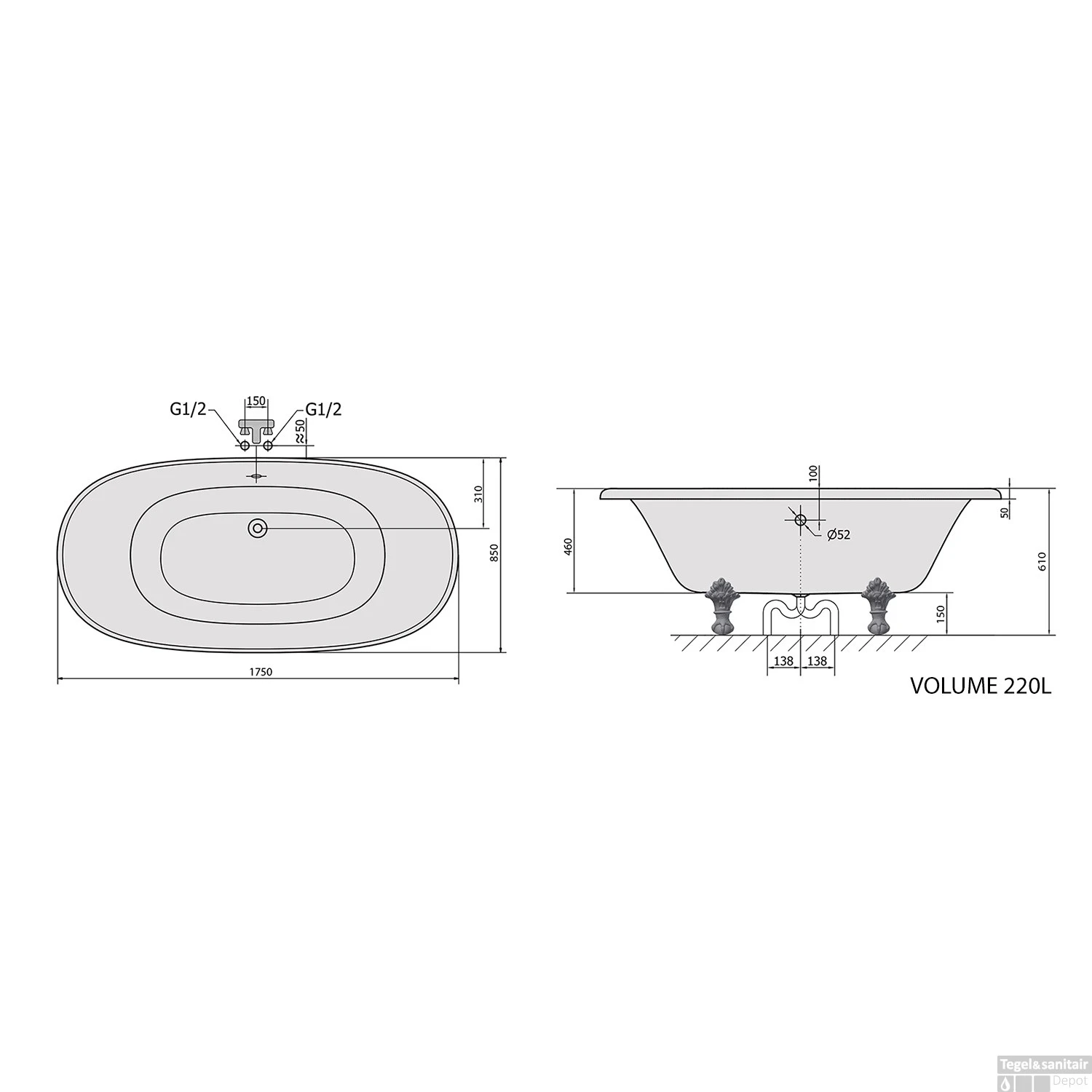 De bronzen poten maken dit vrijstaande bad echt af. Badpoten hoeft u er dus niet meer bij te bestellen. U heeft nog wel een afvoerplug nodig en een badafvoer.