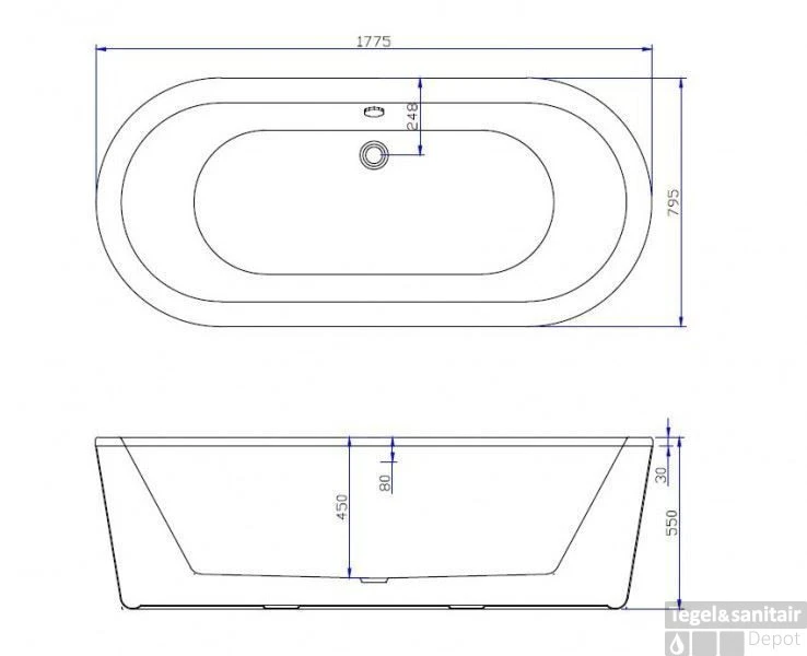 Specificaties Vrijstaand Ligbad Best Design Becoma 178x80x55 cm Wit: