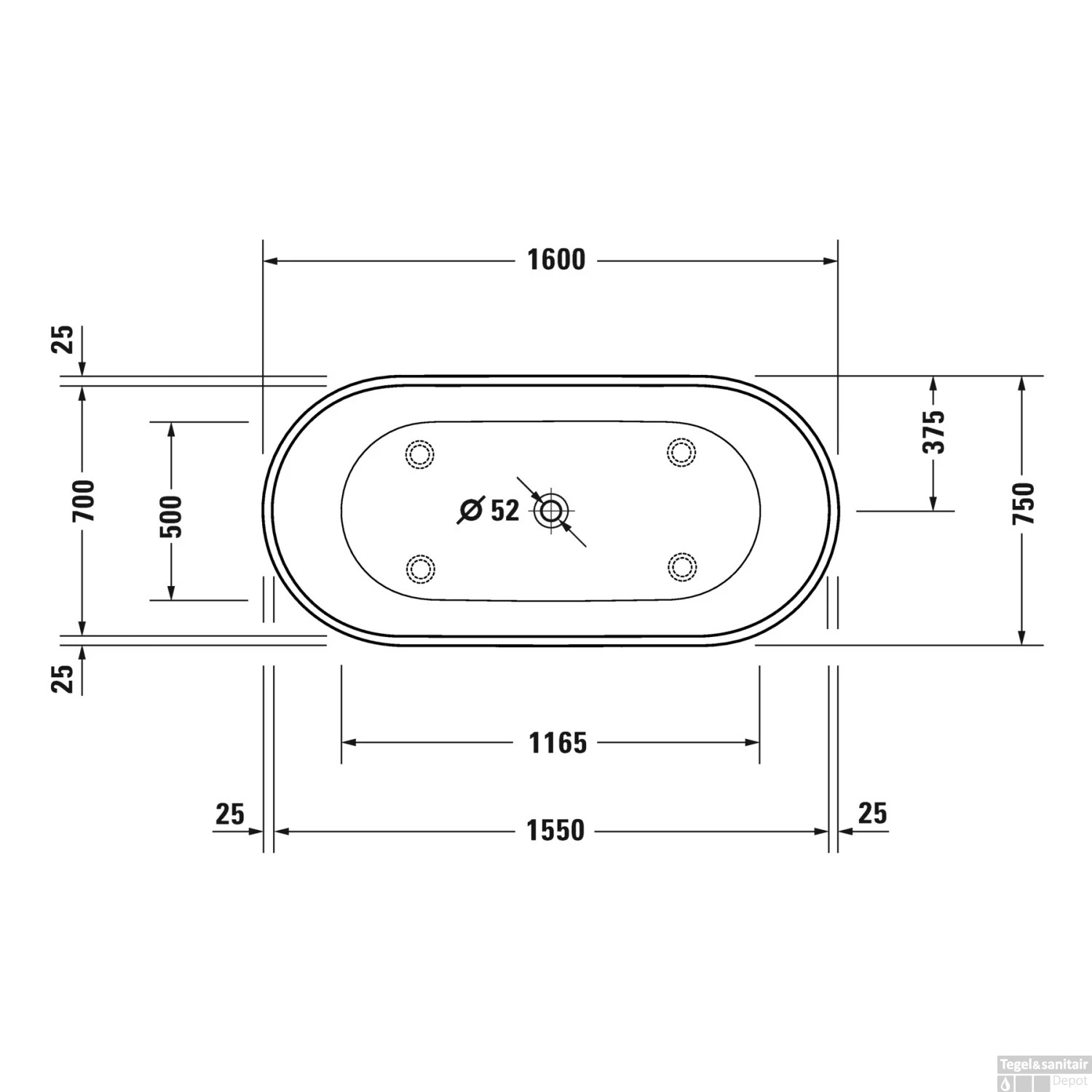 Specificaties Vrijstaand Ligbad Duravit D-Neo 160x75x60 cm Zonder Overloop Mat Wit: