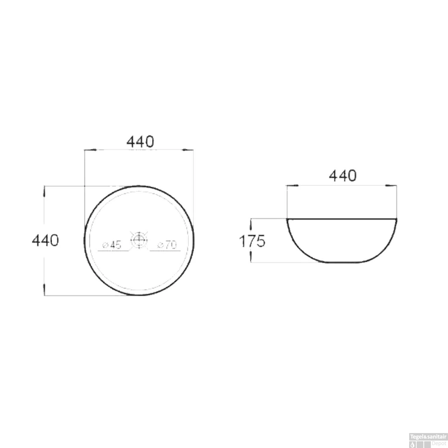 De vrijstaande waskom is 17.5 centimeter hoog en heeft een diameter van 44 centimeter. Een mooie maat waar u comfortabel uw ochtend ritueel mee kunt uitvoeren! De waskom heeft een dubbele wand. Dat heeft te maken met de ingebouwde overloop. Mocht u vergeten de kraan te sluiten zal uw badkamer niet blank komen te staan omdat de overloop het water toch kan afvoeren.