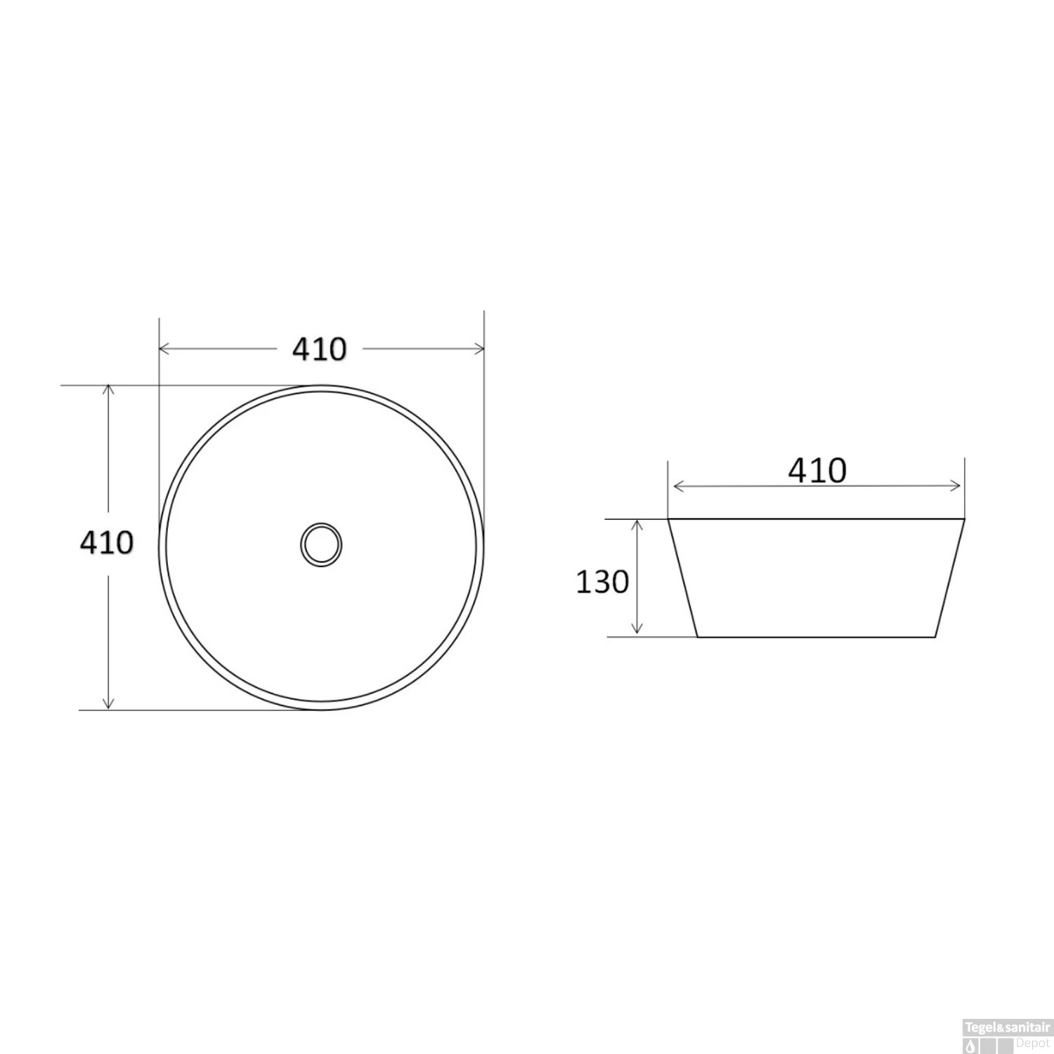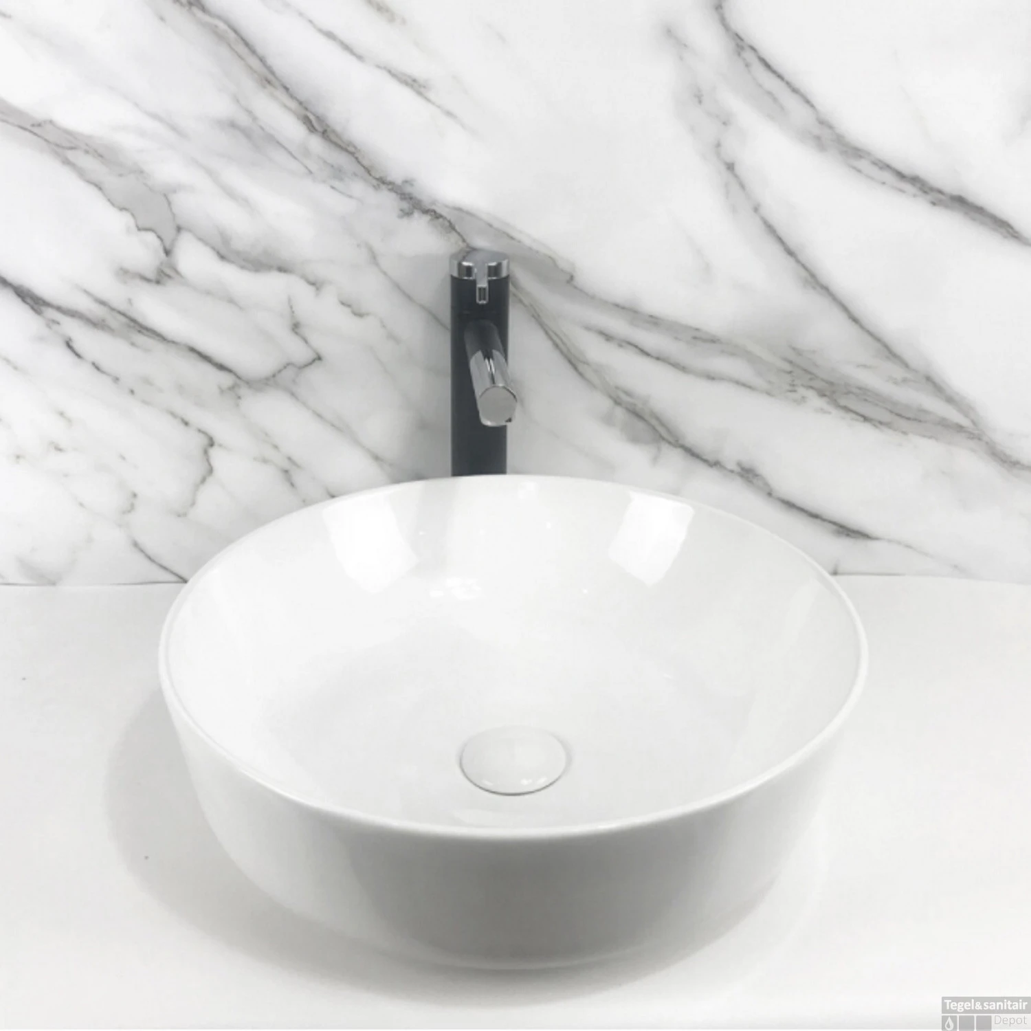 De waskom is 42 cm in diameter en 13 cm hoog. U ontvangt 5 jaar garantie bij deze waskom. De waskom wordt geleverd exclusief afvoer.