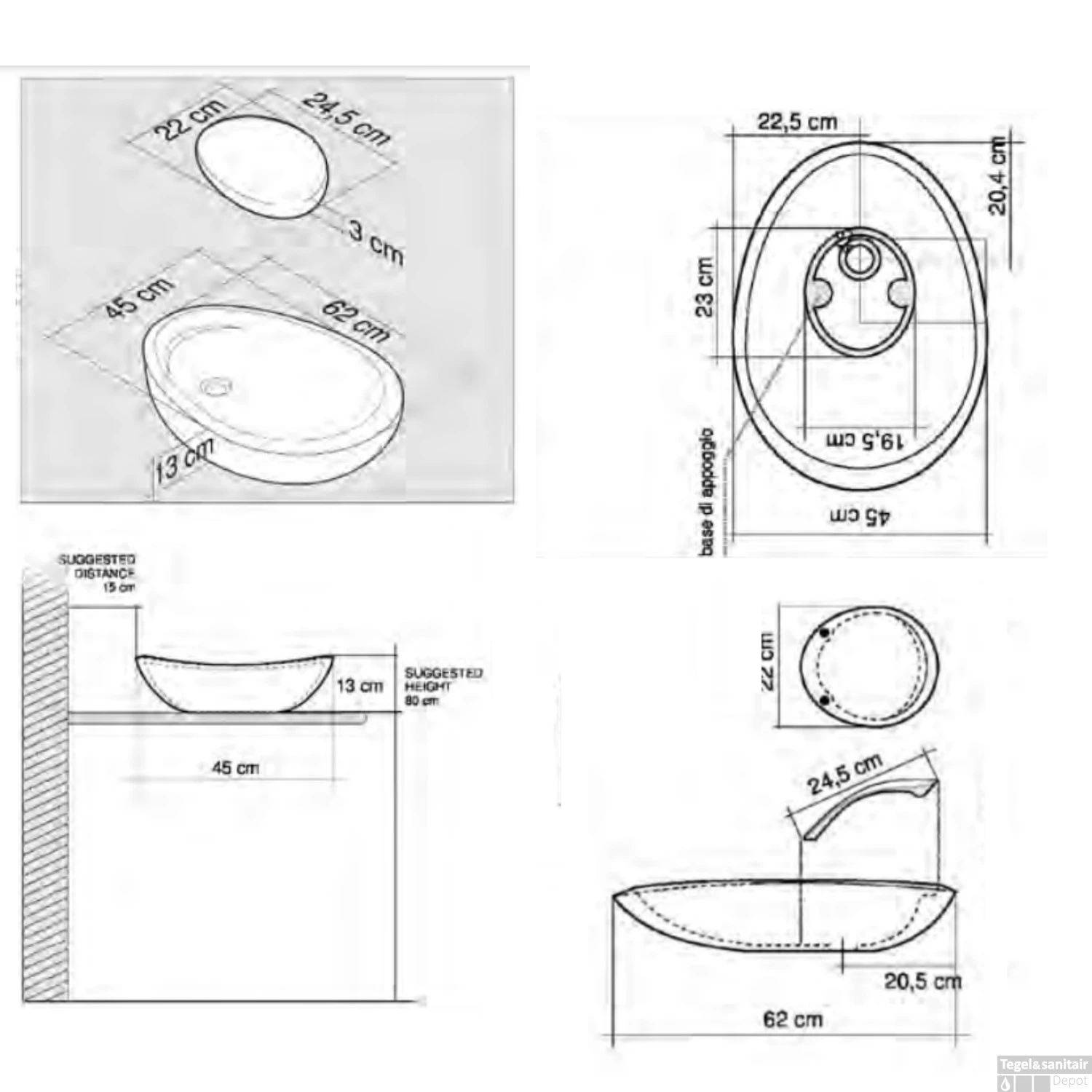 Specificaties Waskom Cipi Saturn Titanio 62x45x13cm Porselein Grijs: