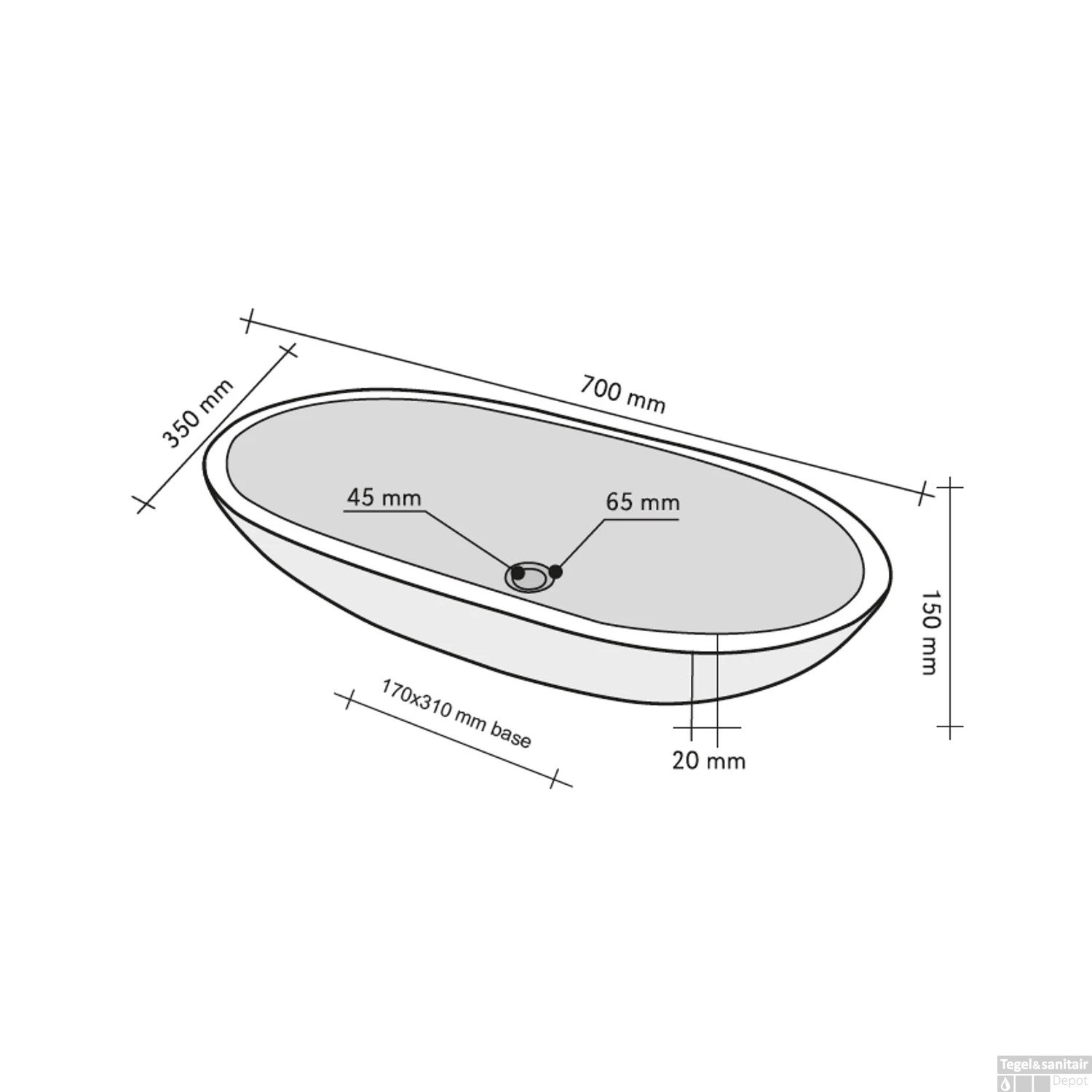 Specificaties Waskom Imso Lavabo Ovale Beige Marmer 35x70x15cm