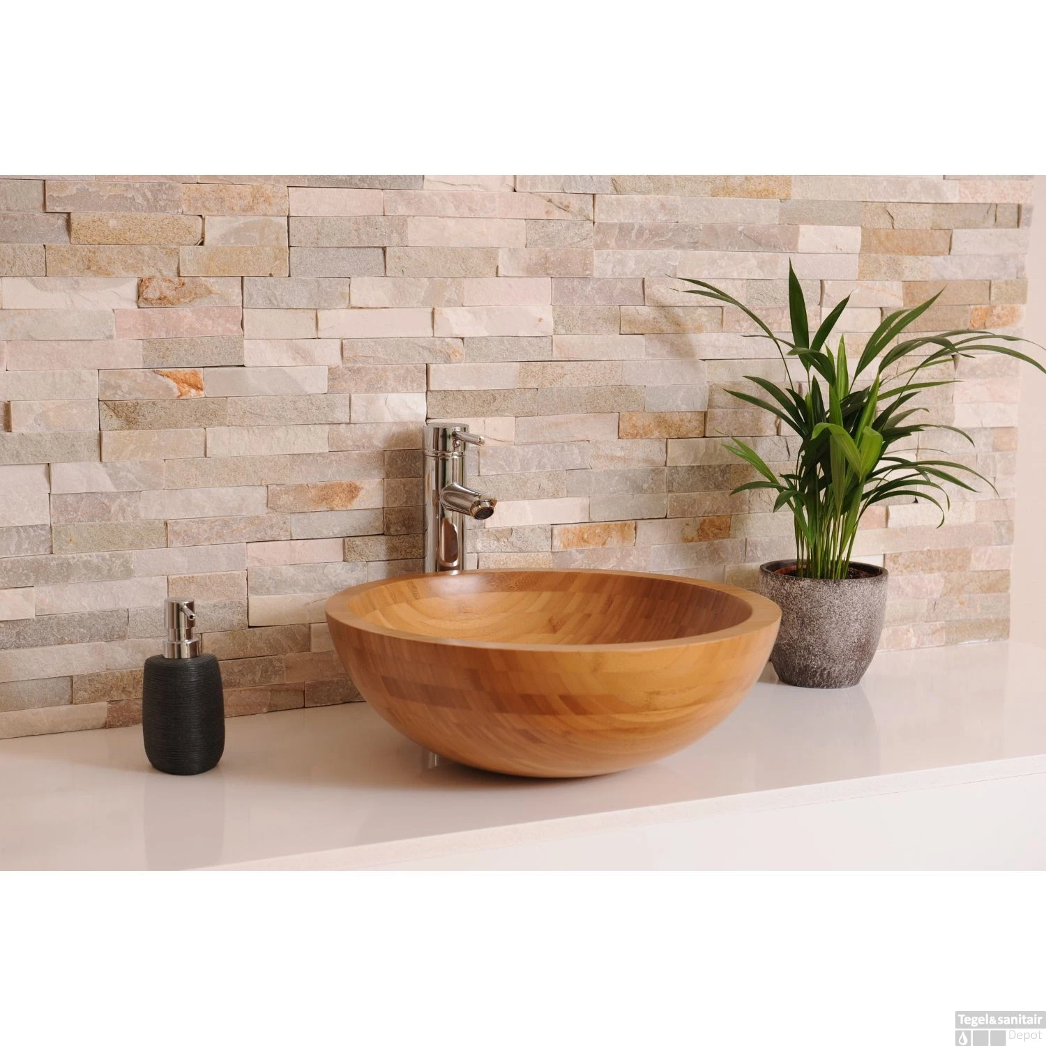 U plaatst de waskom op een wastafelblad of een meubel. Bamboe is een zeer natuurlijk, milieuvriendelijk, ecologisch en duurzaam materiaal. De groei van bamboe gaat zeer snel, waarbij komt dat bamboe een groot bladoppervlak heeft. Bamboe neemt CO2 op uit de atmosfeer door fotosynthese en gebruikt koolstof als energiebron, om daarna de zuurstof weer los te laten. De planten geven tot wel 35% meer zuurstof af dan andere boom/plant soorten. De waskommen die gemaakt zijn van bamboe kunnen nog lange tijd CO2 vasthouden, pas wanneer bamboe verbrand wordt of wanneer het vergaat komt de CO2 weer vrij. De levensduur van bamboe is in verhouding tot andere materialen uniek lang. Daarbij is bamboe ook keihard en slijtvast, wat de ideale compacte vezelstructuur bewerkstelligd. Dit maakt bamboe een zeer duurzaam materiaal en daarom een fantastisch product voor u.